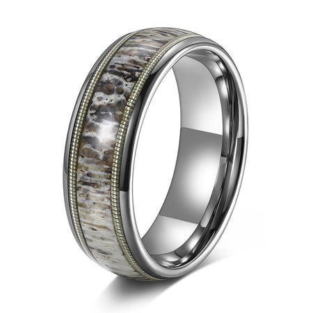 8mm Antlers Guitar Strings Inlay Men's Tungsten Ring