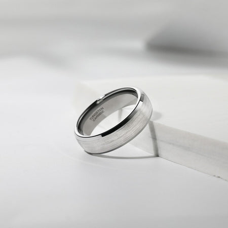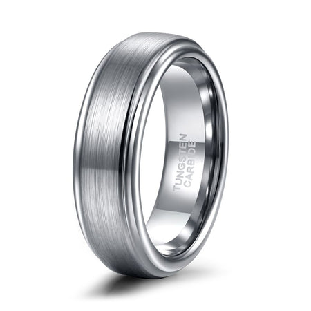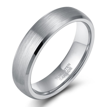 6mm Domed Tungsten Carbide Ring Men Silver Color Brushed Wedding Bands