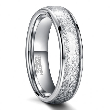 6mm Tungsten Carbide Rings Men Women Silver Dome Polished Imitation Meteorite Inlay Ring