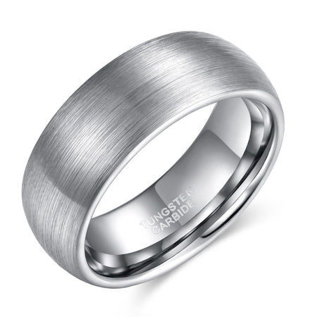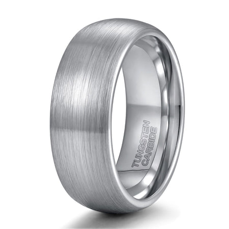 8mm Domed Tungsten Carbide Ring Men Silver Color Brushed Wedding Bands