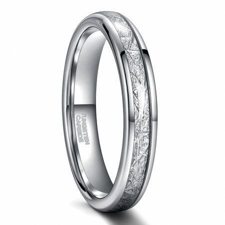 4mm Tungsten Carbide Rings Men Women Silver Dome Polished Imitation Meteorite Inlay Ring