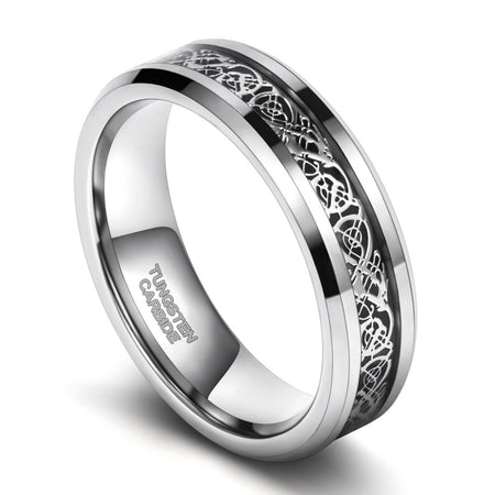 8mm Silver Color Tungsten Carbide Ring Celtic Dragon Inlay Men Women Engagement Wedding Bands