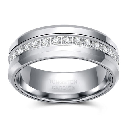 8mm Silver Color Cubic Zircon Men Ring Round Diamonds Tungsten Carbide Rings Wedding Bands