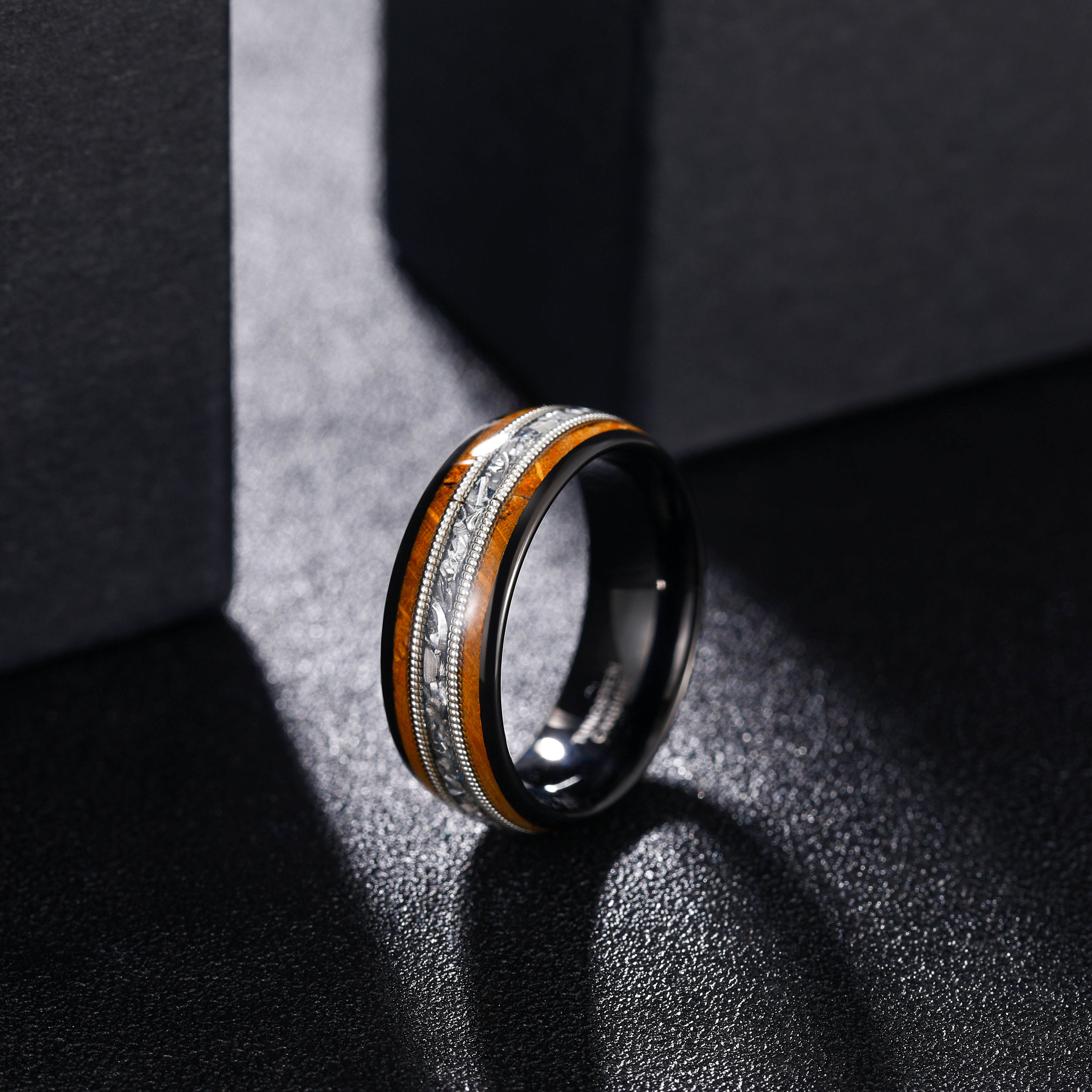 8mm Whiskey Barrel Wood Guitar Strings Aluminum Inlay Tungsten Carbide Ring
