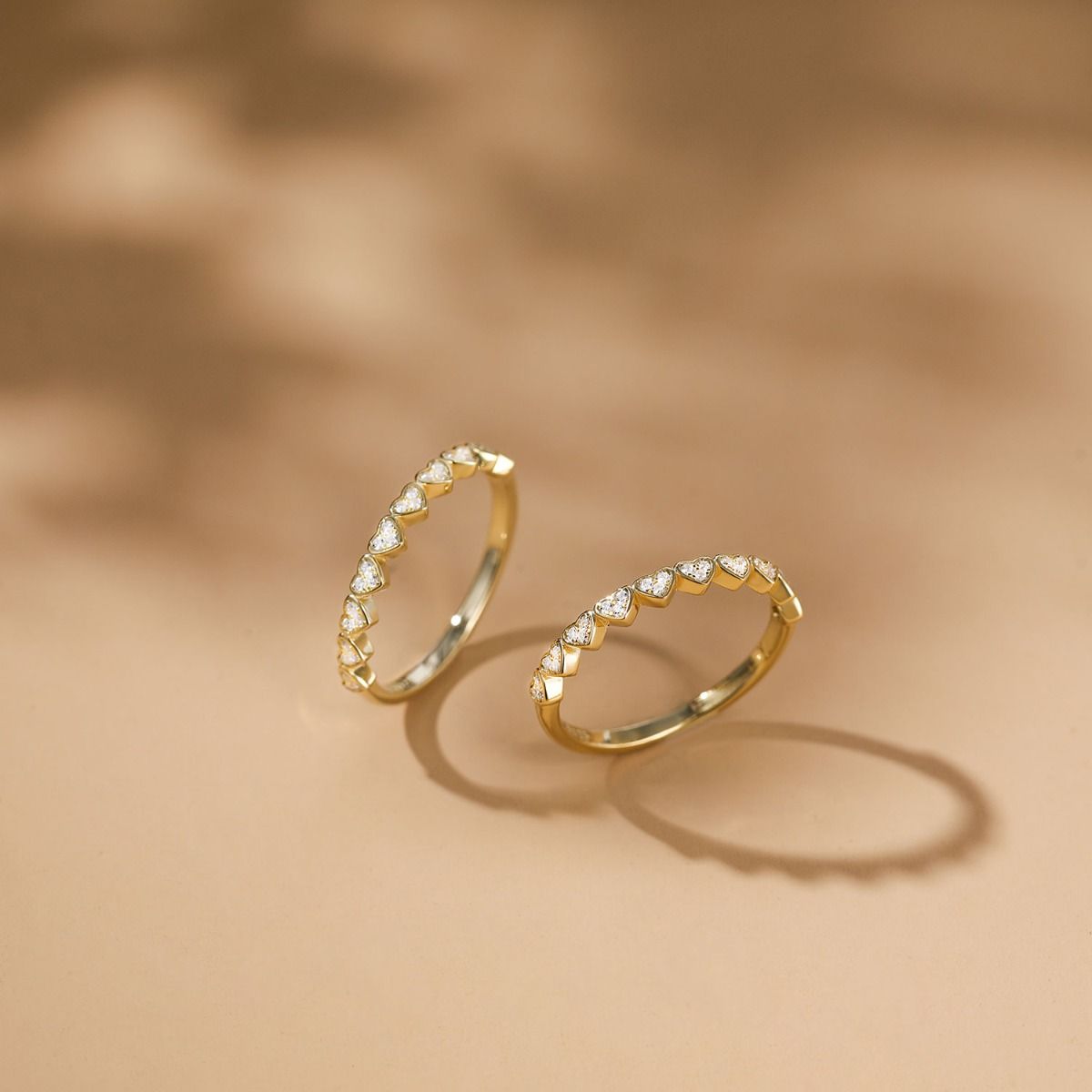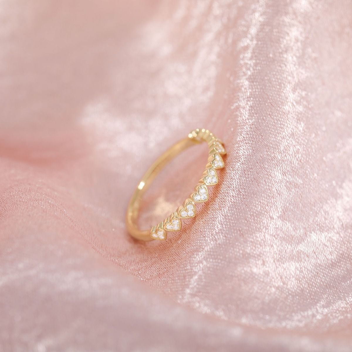 925 Sterling Silver Love Heart Ring 14K Gold Plated Women Stackable Cubic Zirconia Eternity Rings