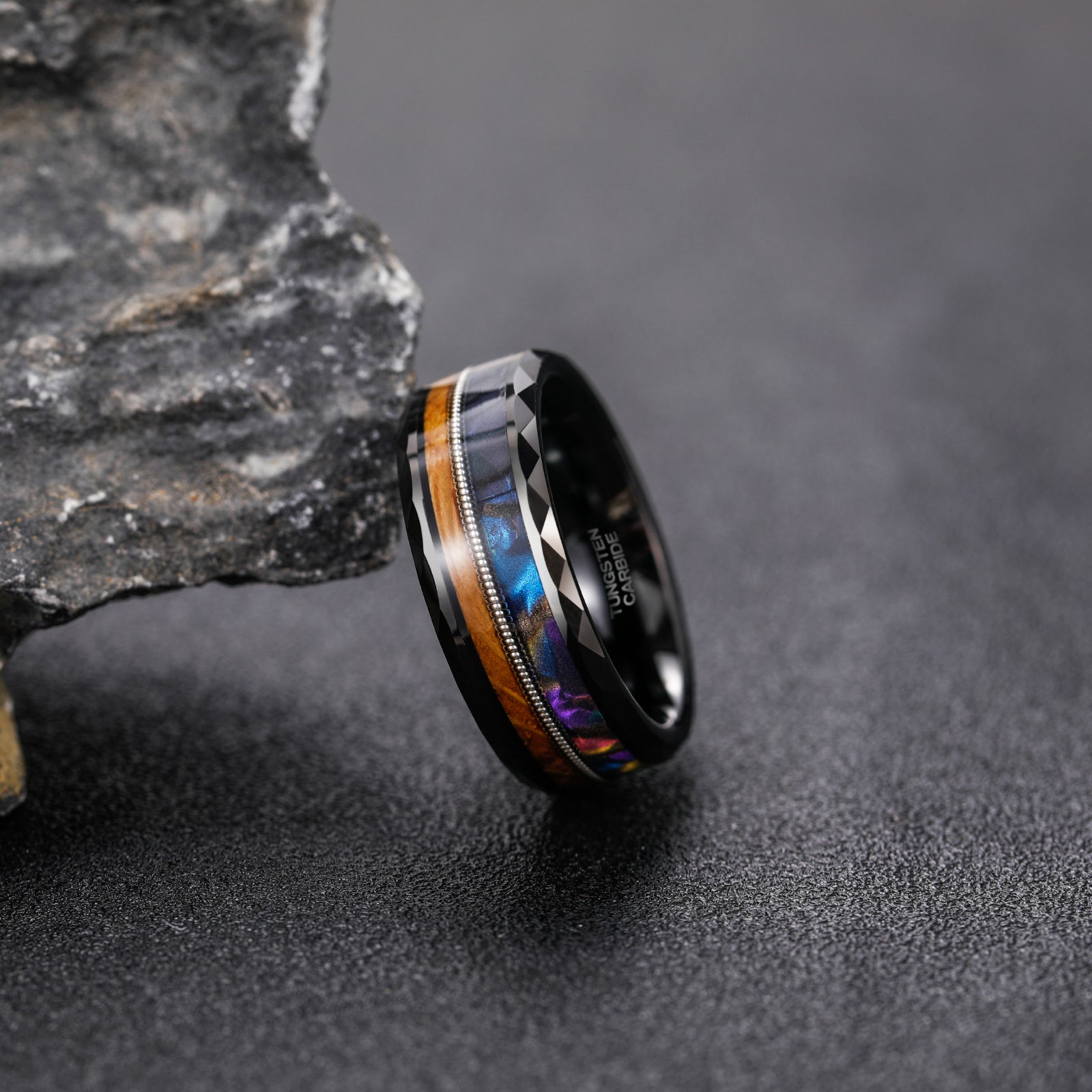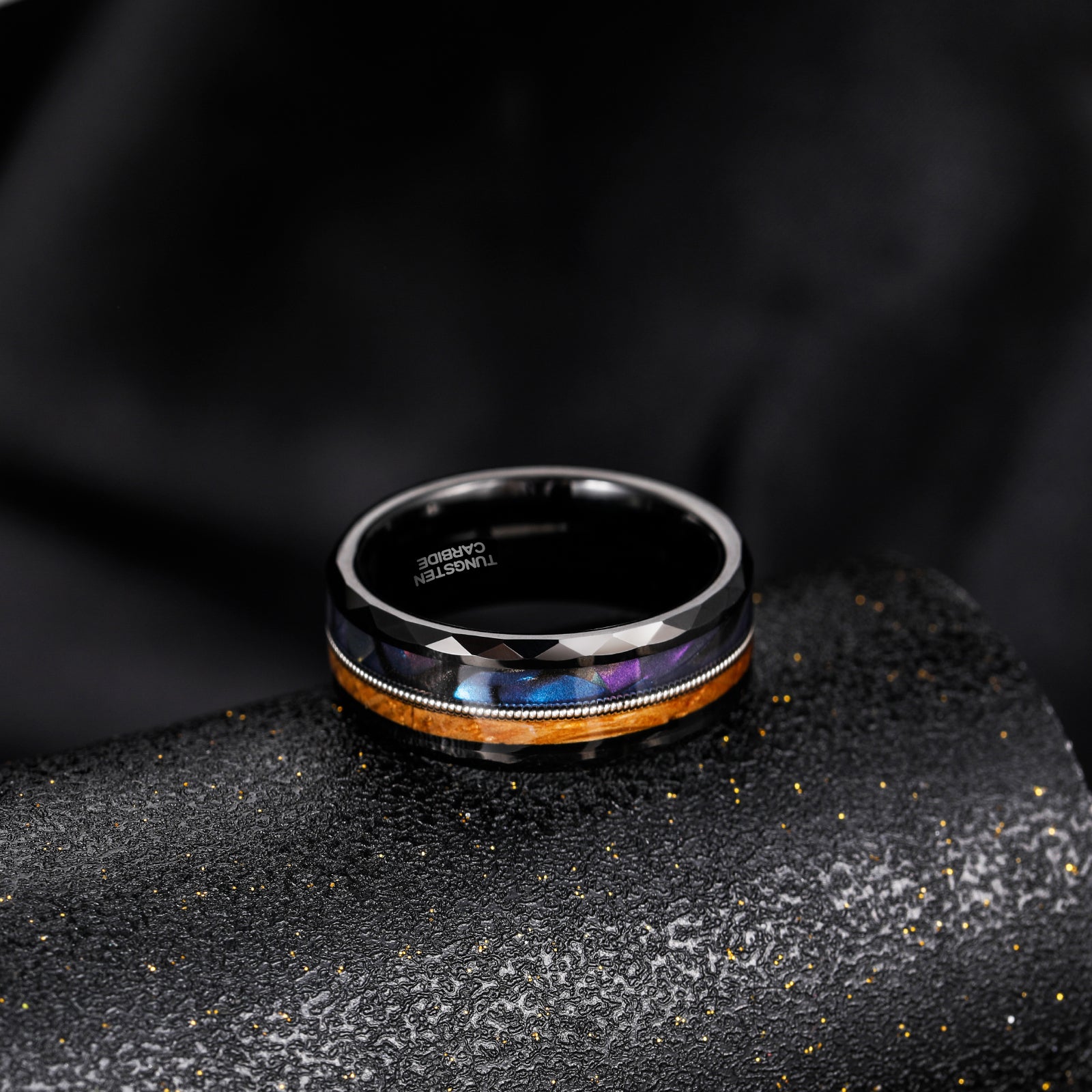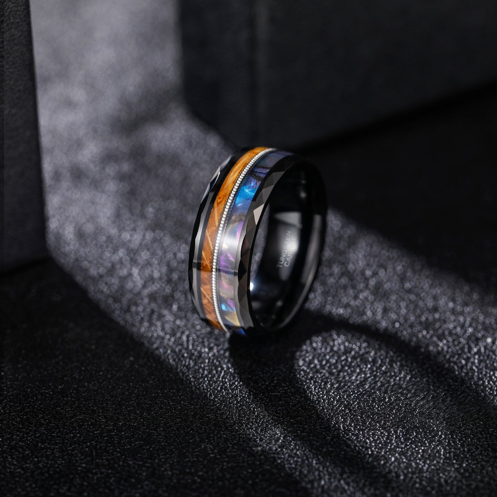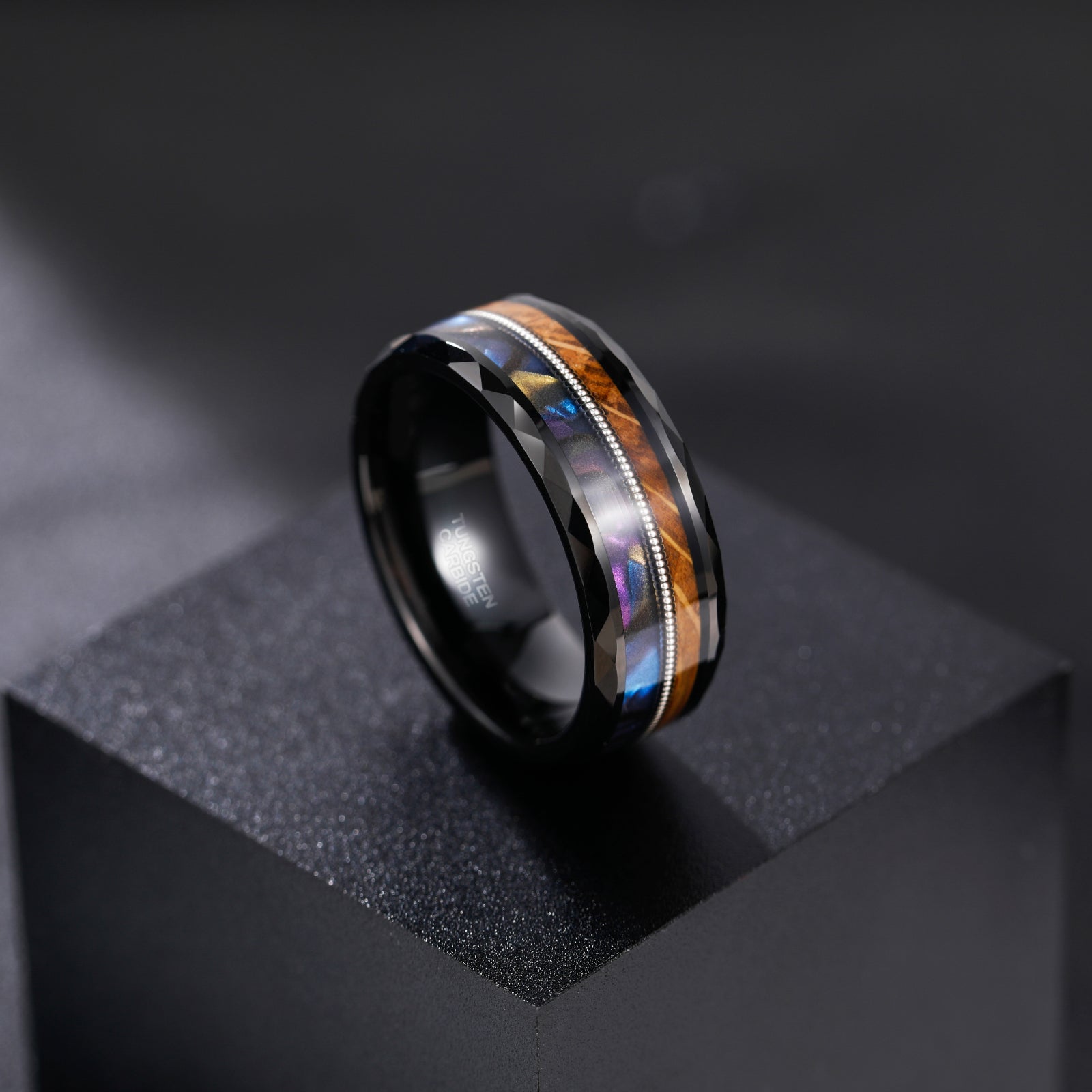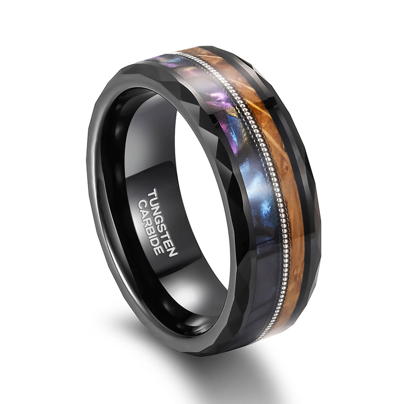 Fashion Jewelry 8mm Guitar String Barrel Wood and Abalone Shell Pattern Tungsten Carbide Rings for Men Wedding Engagement