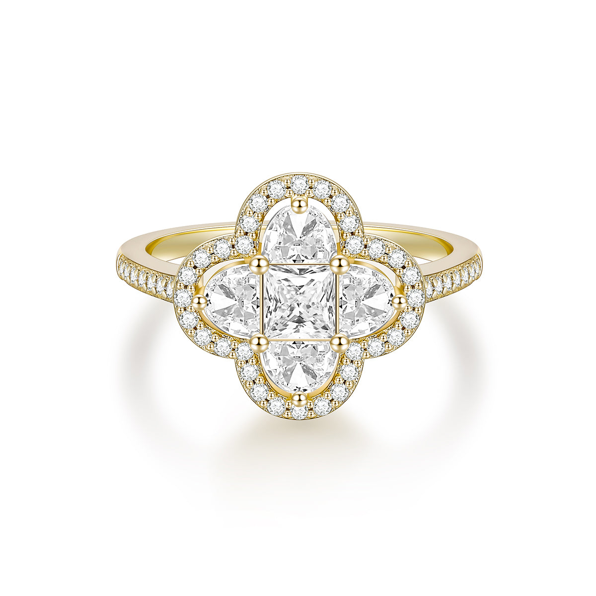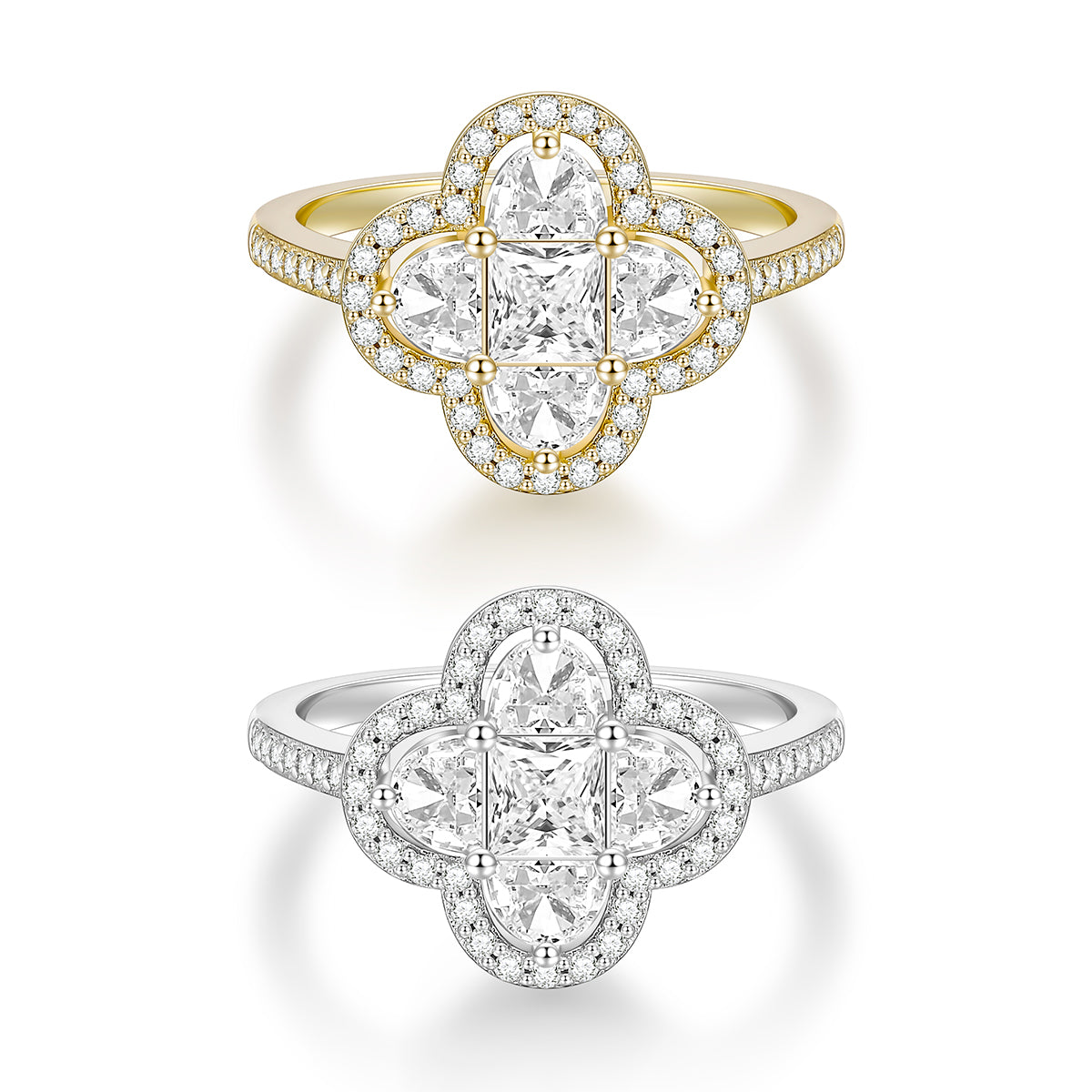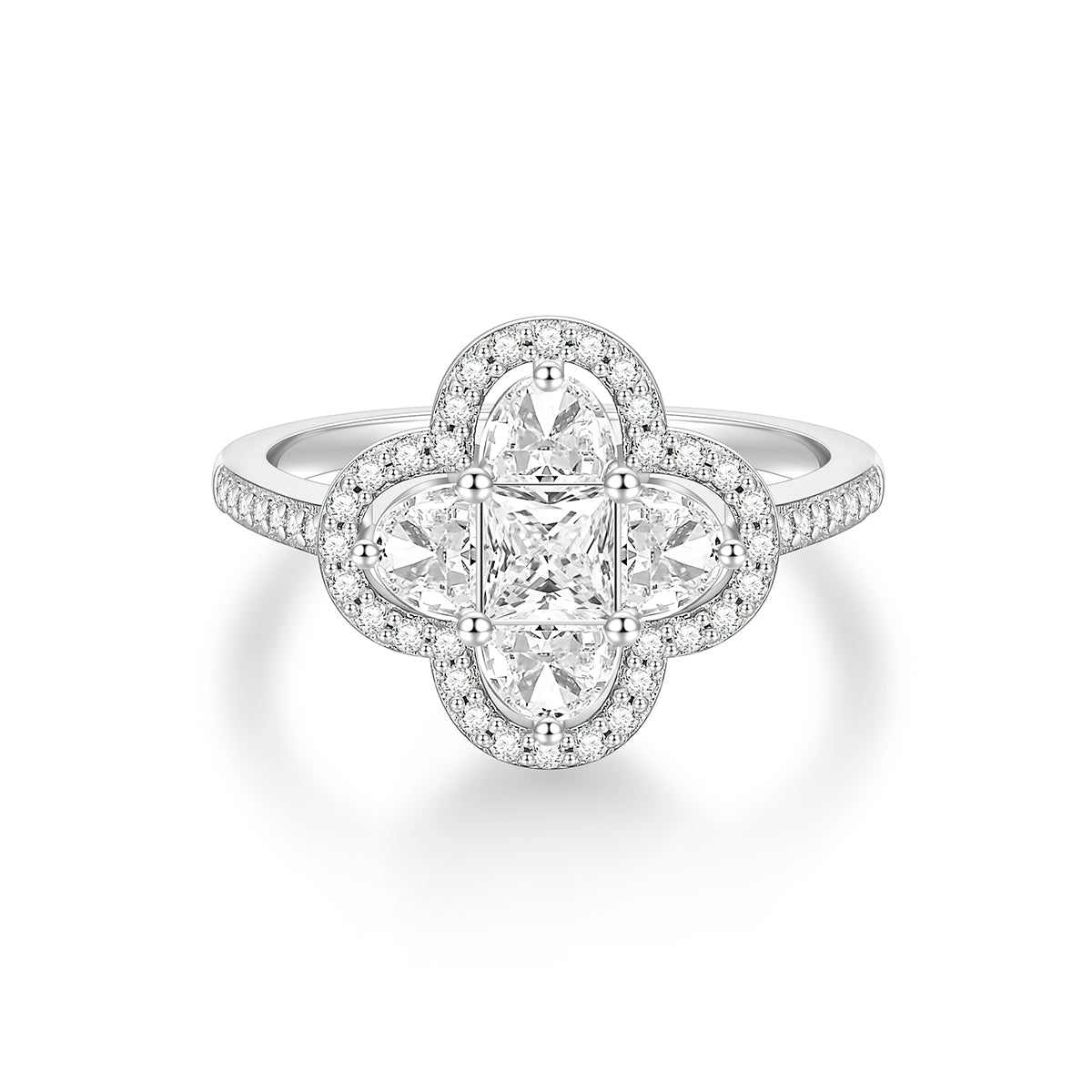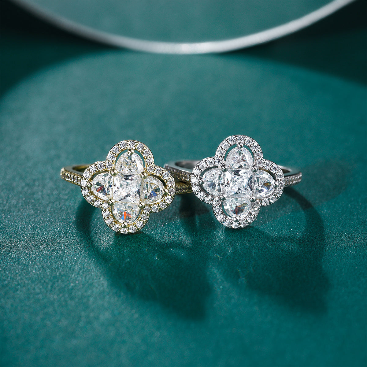 Fine Jewelry Wedding Rings Luxury Four Leaf Clover Cubic Zirconia Engagement S925 Sterling Silver Ring for Women Girl