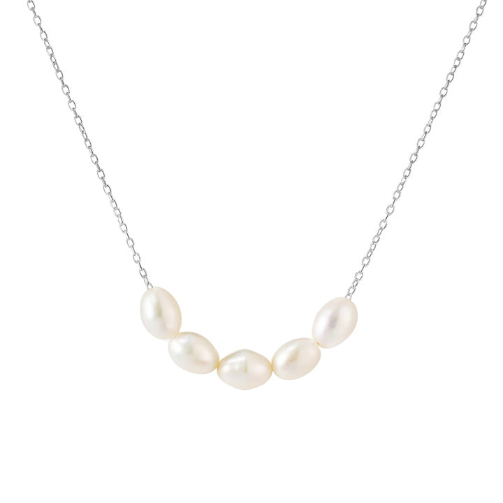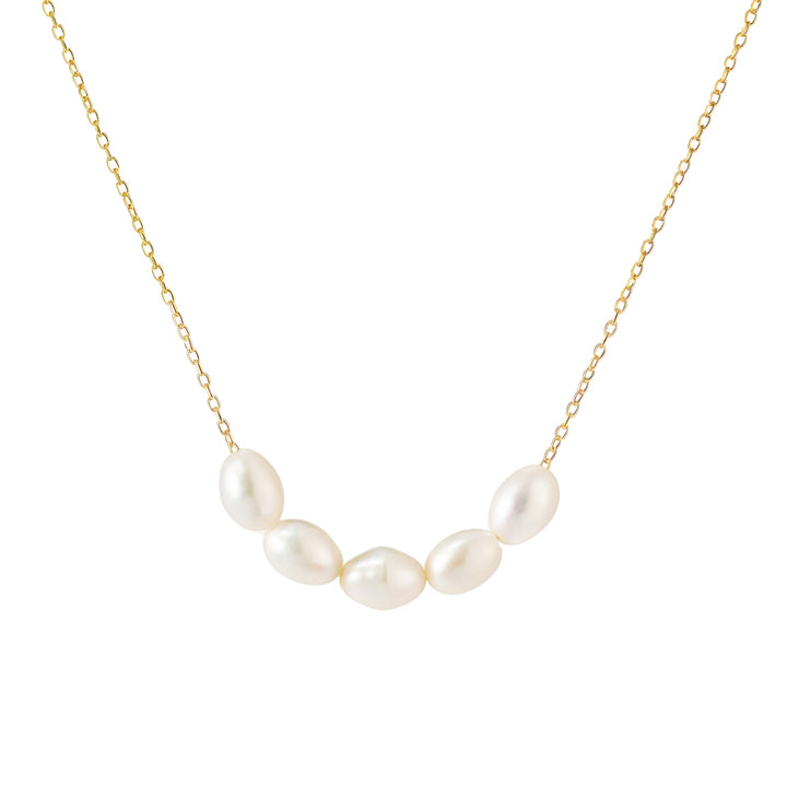 OAHLAN 925 Sterling Silver Link Chain Necklace Gold Plated with Lustrous White Pearls for Engagement Wedding Gift for Women