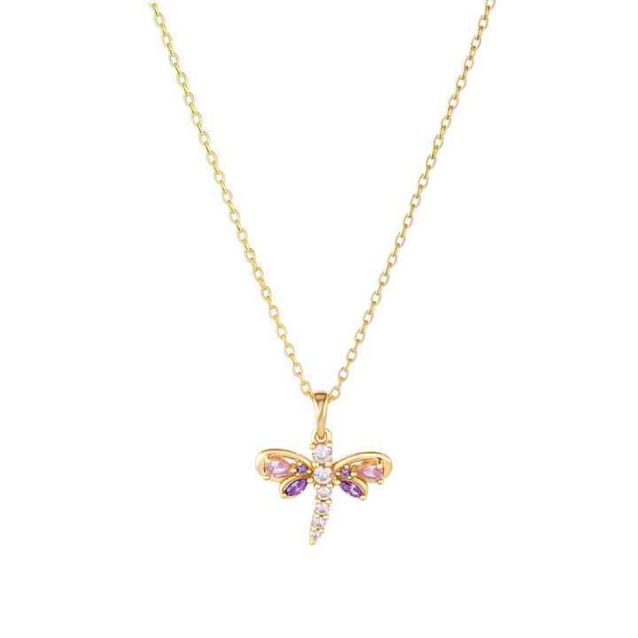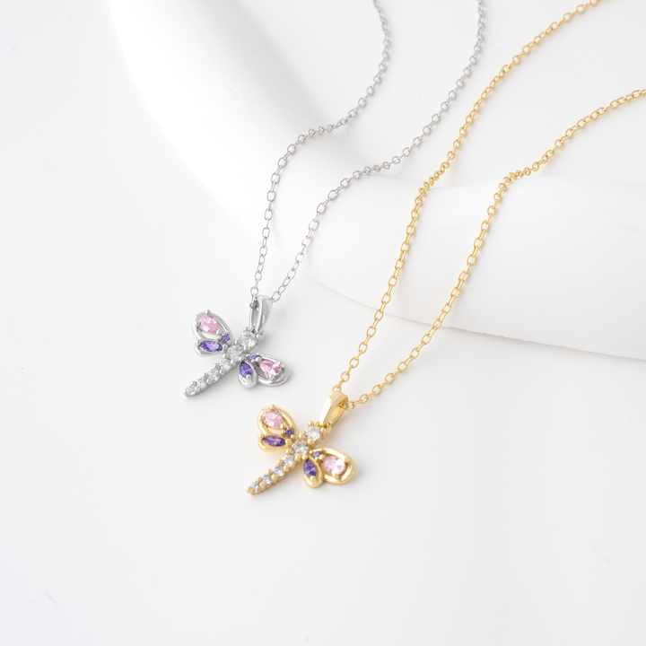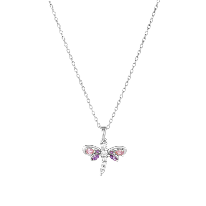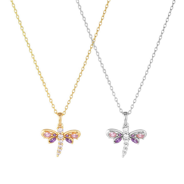 OAHLAN Delicate Dragonfly S925 Sterling Silver Pendant Necklace Pink Purple Zircon Fine Jewelry for Women's Parties Weddings