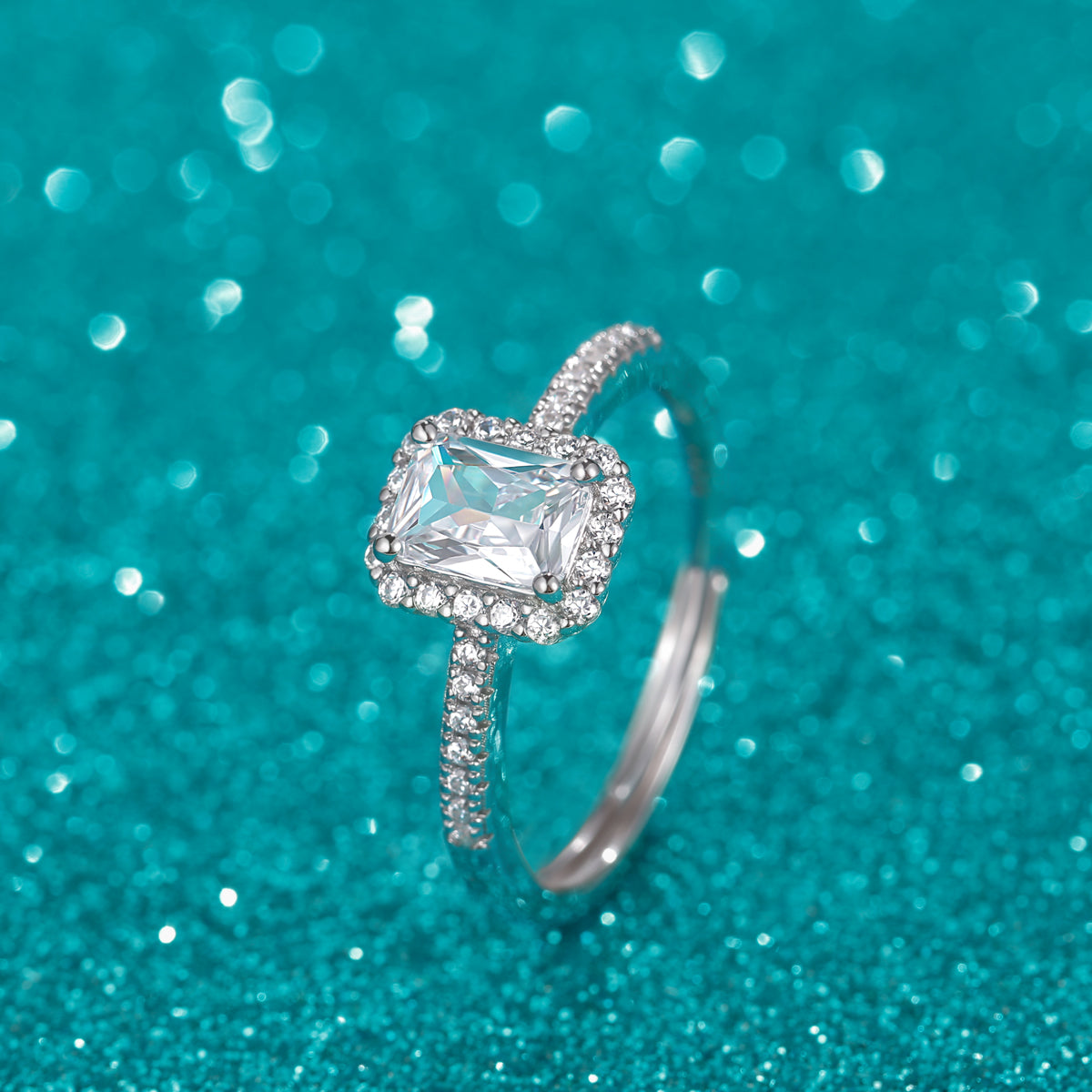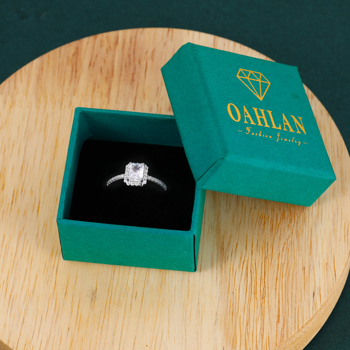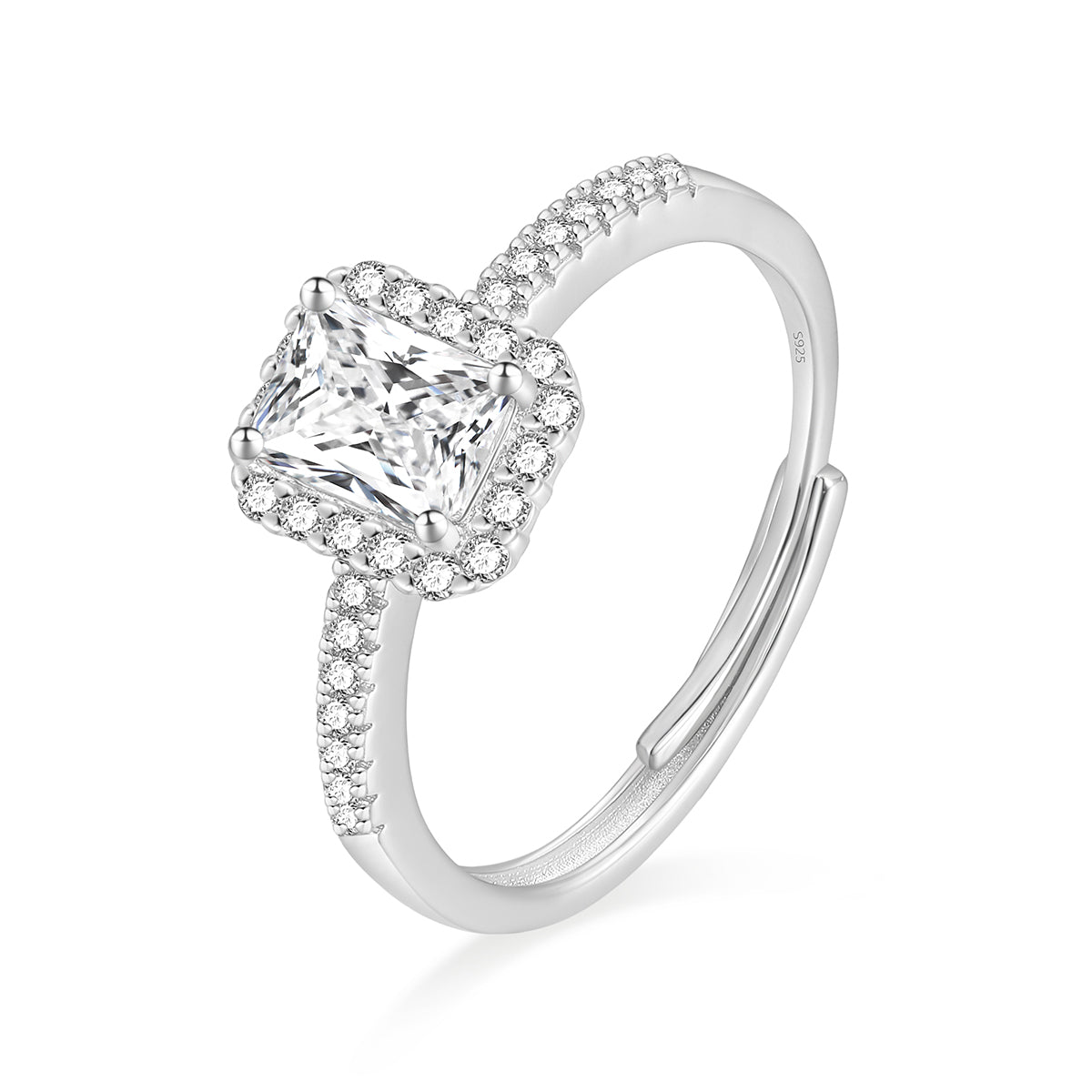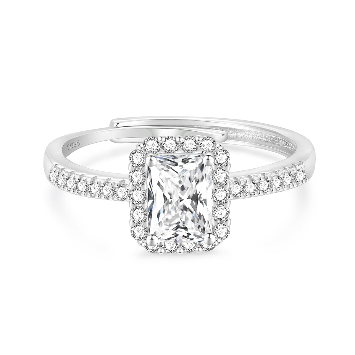 OAHLAN Fine Jewellery Radiant Cut Sparkling Zircon Adjustable S925 Sterling Silver Ring for Women Wedding Engagement
