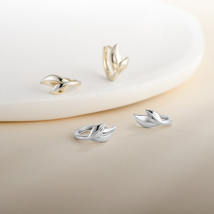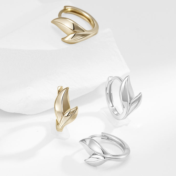 OAHLAN Fine Jewelry 14K Gold Plated Leaf Shaped S925 Sterling Silver Hoop Earrings for Women Engagement Wedding