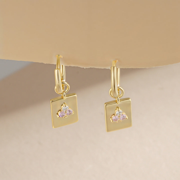 OAHLAN Fine Jewelry 14K Gold Plated Rectangular Inlaid Zircon S925 Sterling Silver Earrings for Women Engagement Wedding