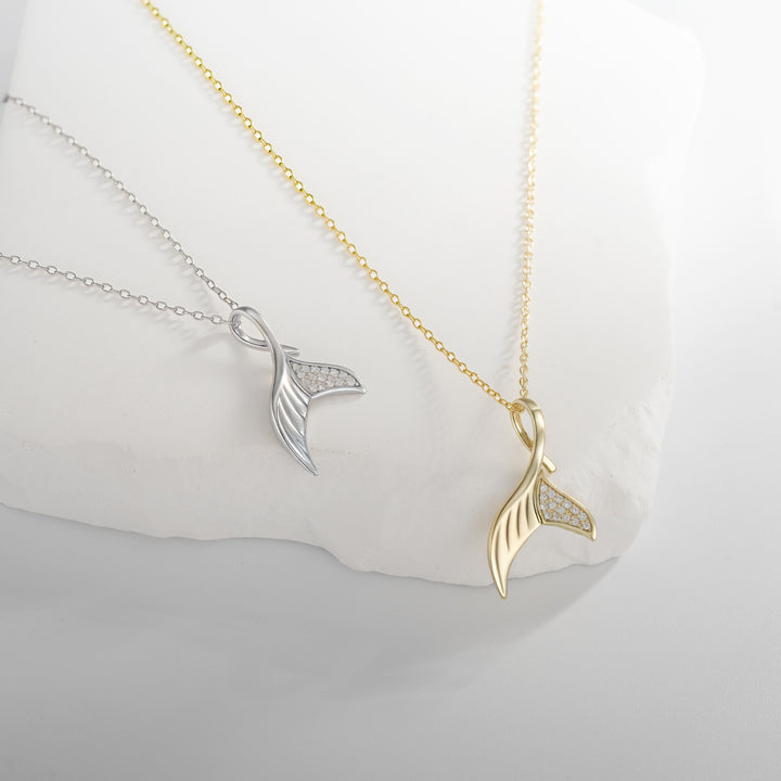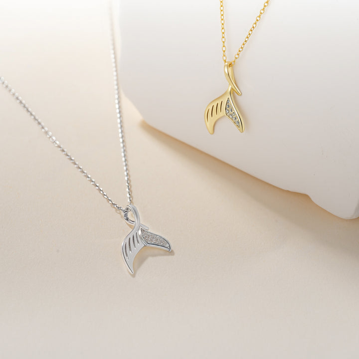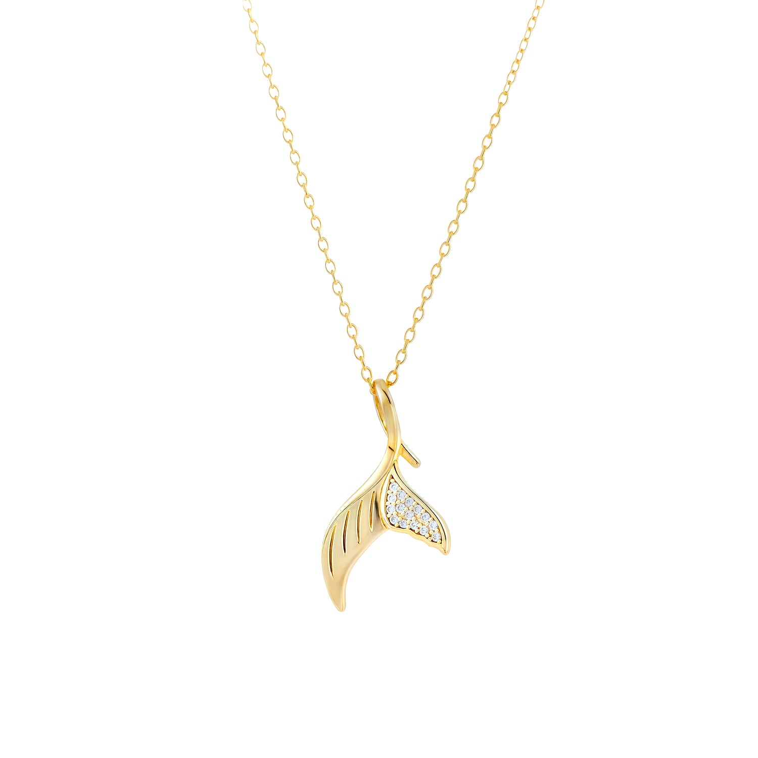 OAHLAN Fine Jewelry Gold Plated Mermaid Tail Inlaid Zircon S925 Sterling Silver Pendant Necklaces for Women Anniversary Wedding