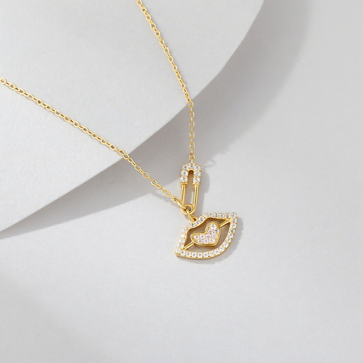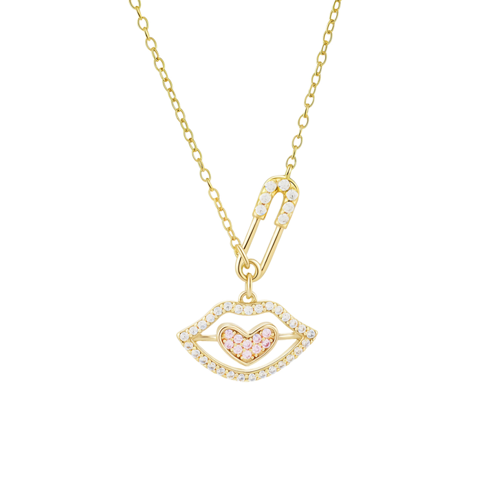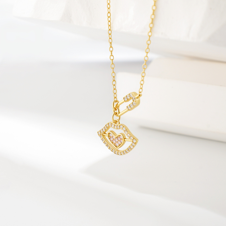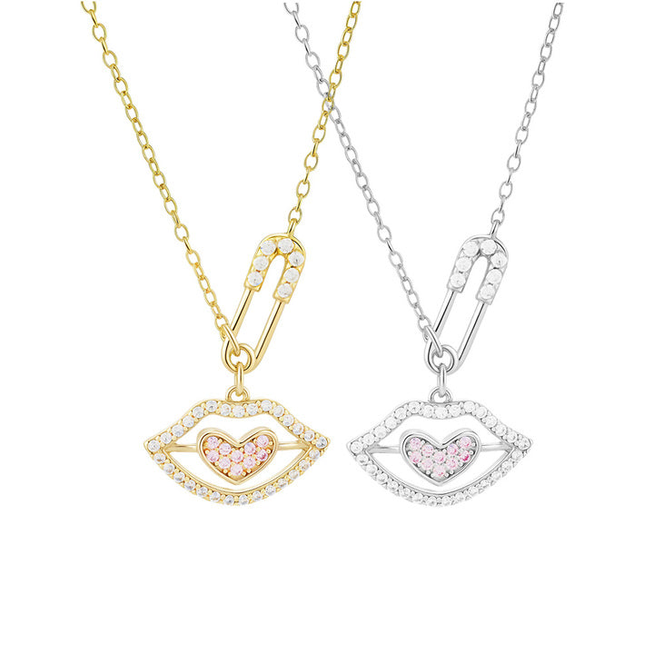 OAHLAN Fine Jewelry Gold Plated S925 Sterling Silver Lip Pendant Necklace Heart Shaped Pink Zircon for Women's Anniversary Gift