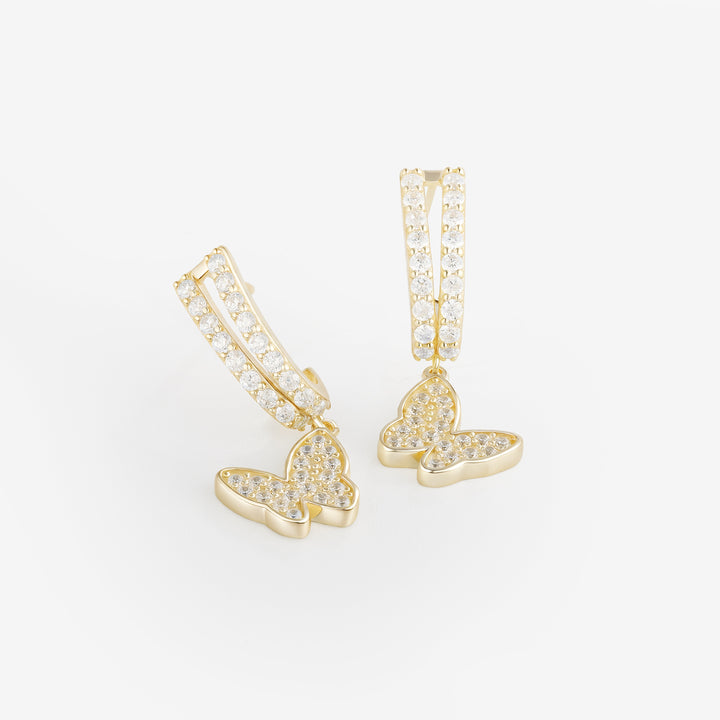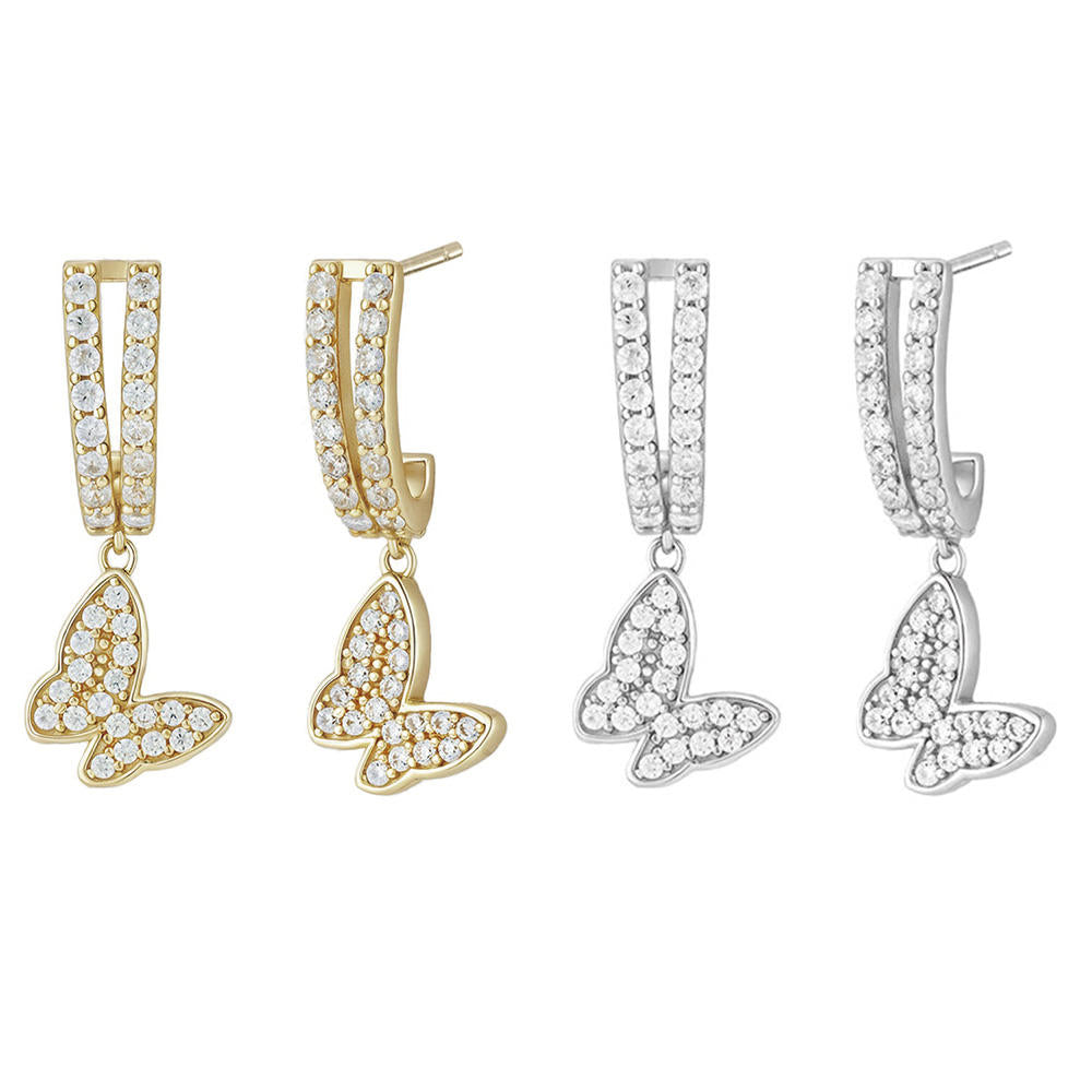 OAHLAN Fine Jewelry Round Cut Zircon 14K Gold Plated Butterfly Shaped S925 Sterling Silver Earrings for Women Engagement Wedding
