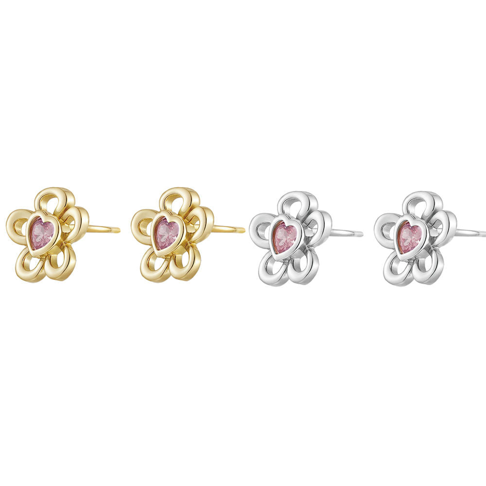 OAHLAN Fine Jewelry S925 Sterling Silver Heart Flower Stud Earrings Zircon Geometric Trendy for Parties Wedding Anniversary