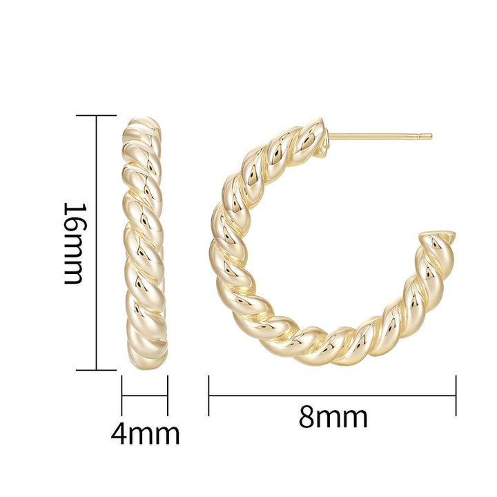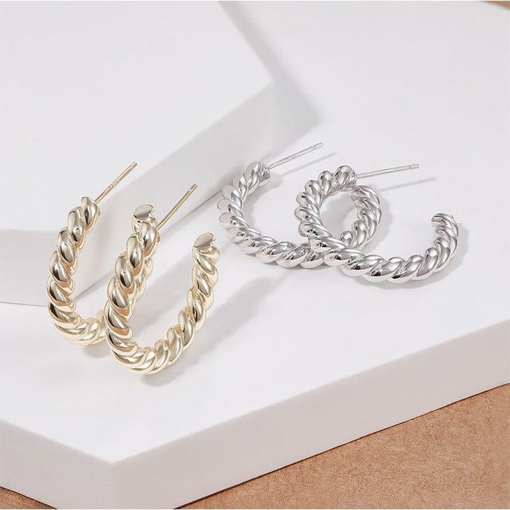 OAHLAN Fine Jewelry Simple C Shaped Fried Dough Twists S925 Sterling Silver Earrings for Women Engagement Wedding