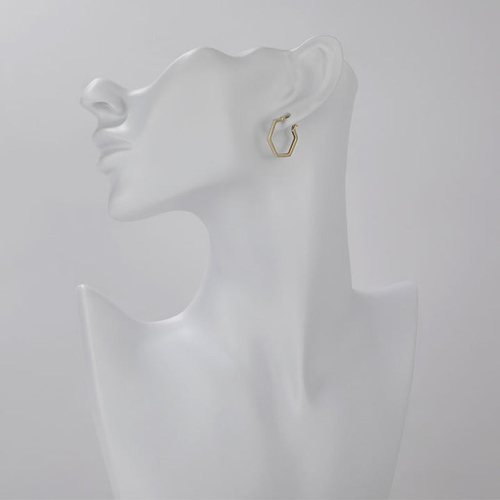 OAHLAN Fine Jewelry Simple Geometric Hexagon Shaped S925 Sterling Silver Hoop Earrings for Women Engagement Wedding Party