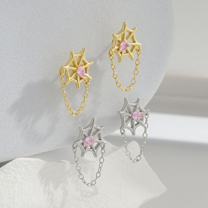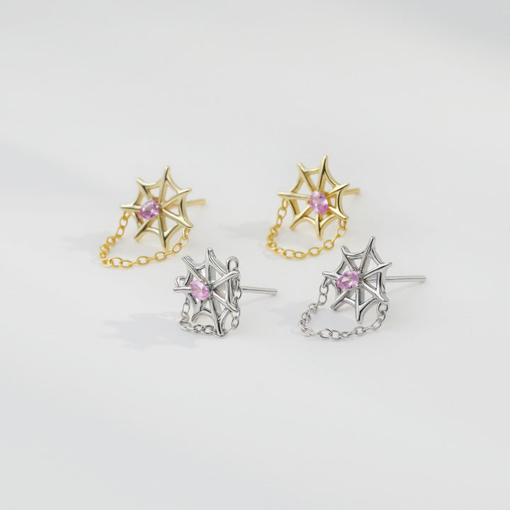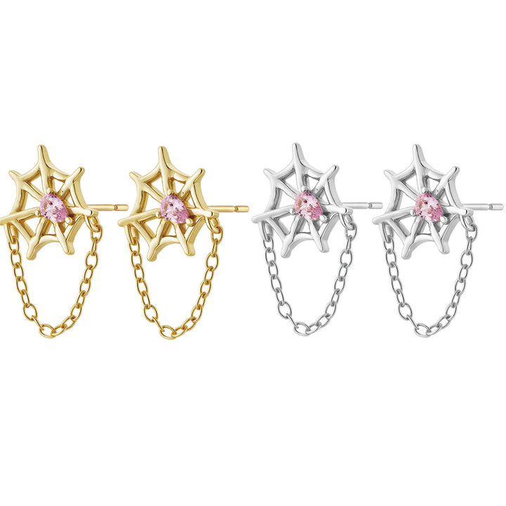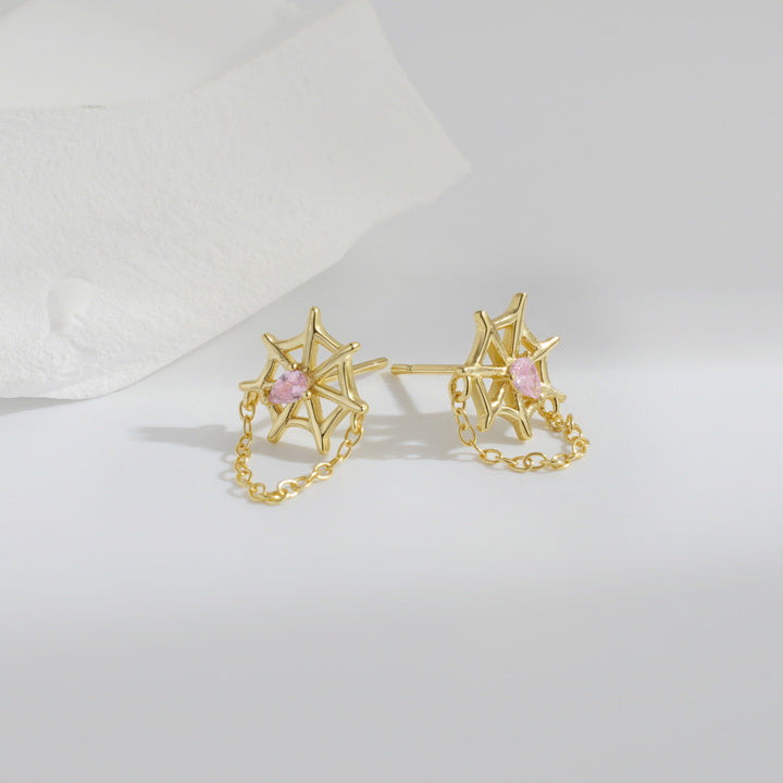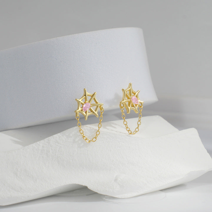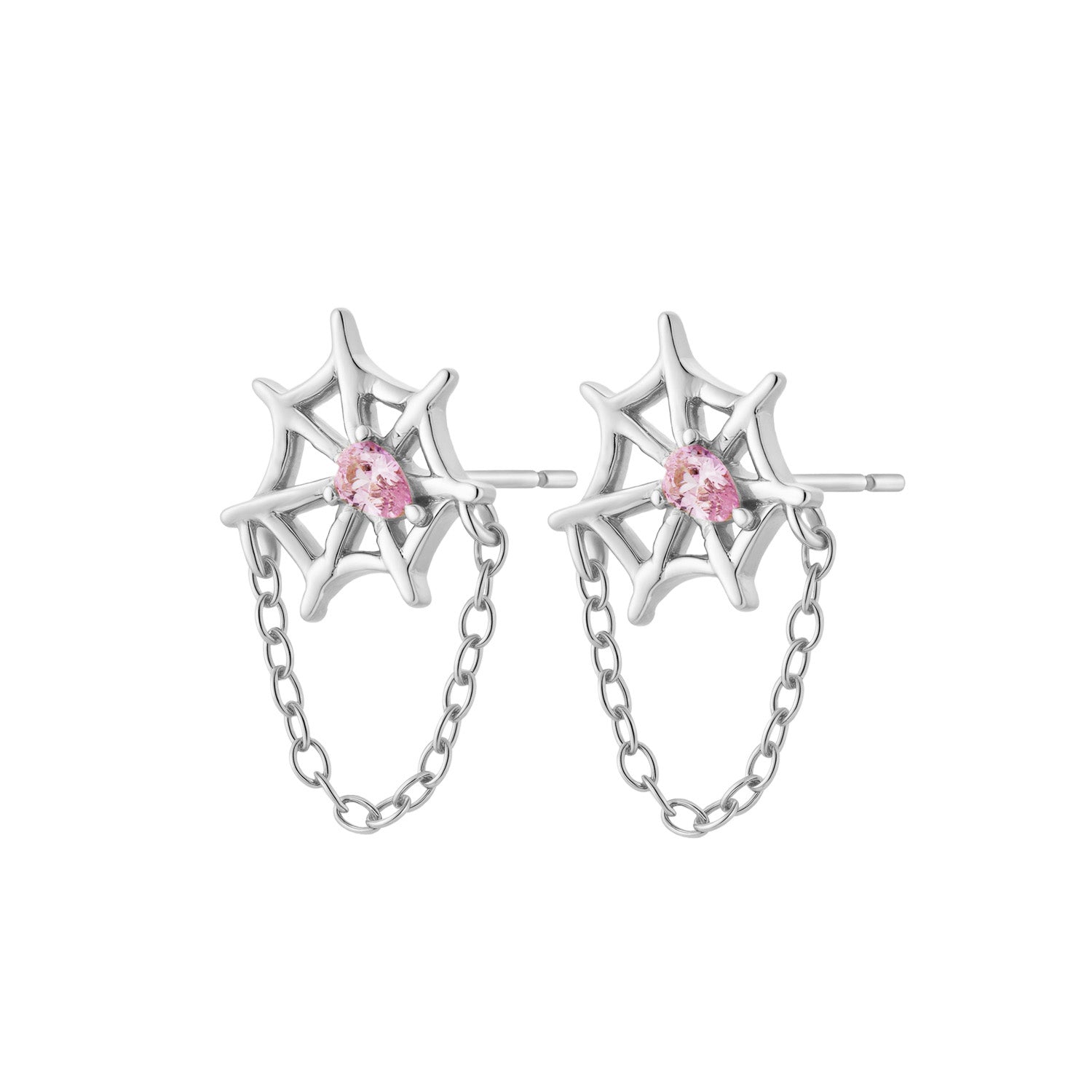 OAHLAN Fine Jewelry Spider Web Design S925 Sterling Silver Earrings with Pink Zircon for Women Parties Wedding Anniversary