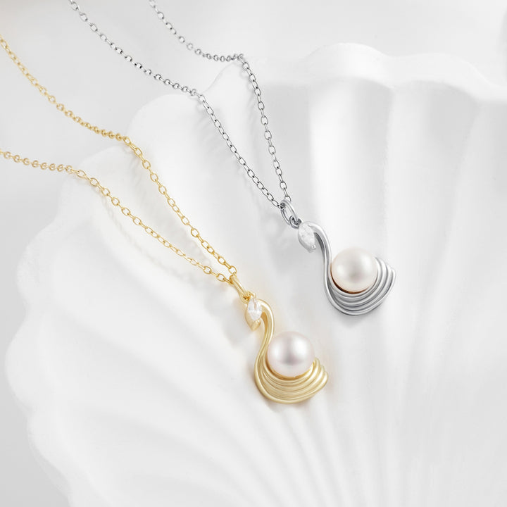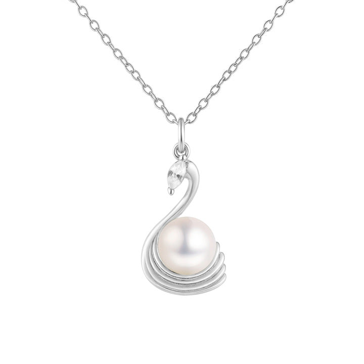 OAHLAN Fine Jewelry Swan Design 925 Sterling Silver Link Chain Necklace with Freshwater Pearl Engagement Wedding Gift for Women