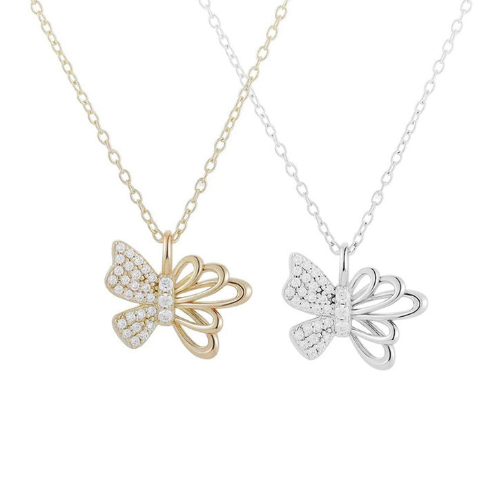 OAHLAN Fine Jewelry Wholesale Bow Sparkling Zirconia S925 Sterling Silver Pendant Necklaces for Women Wedding Engagement