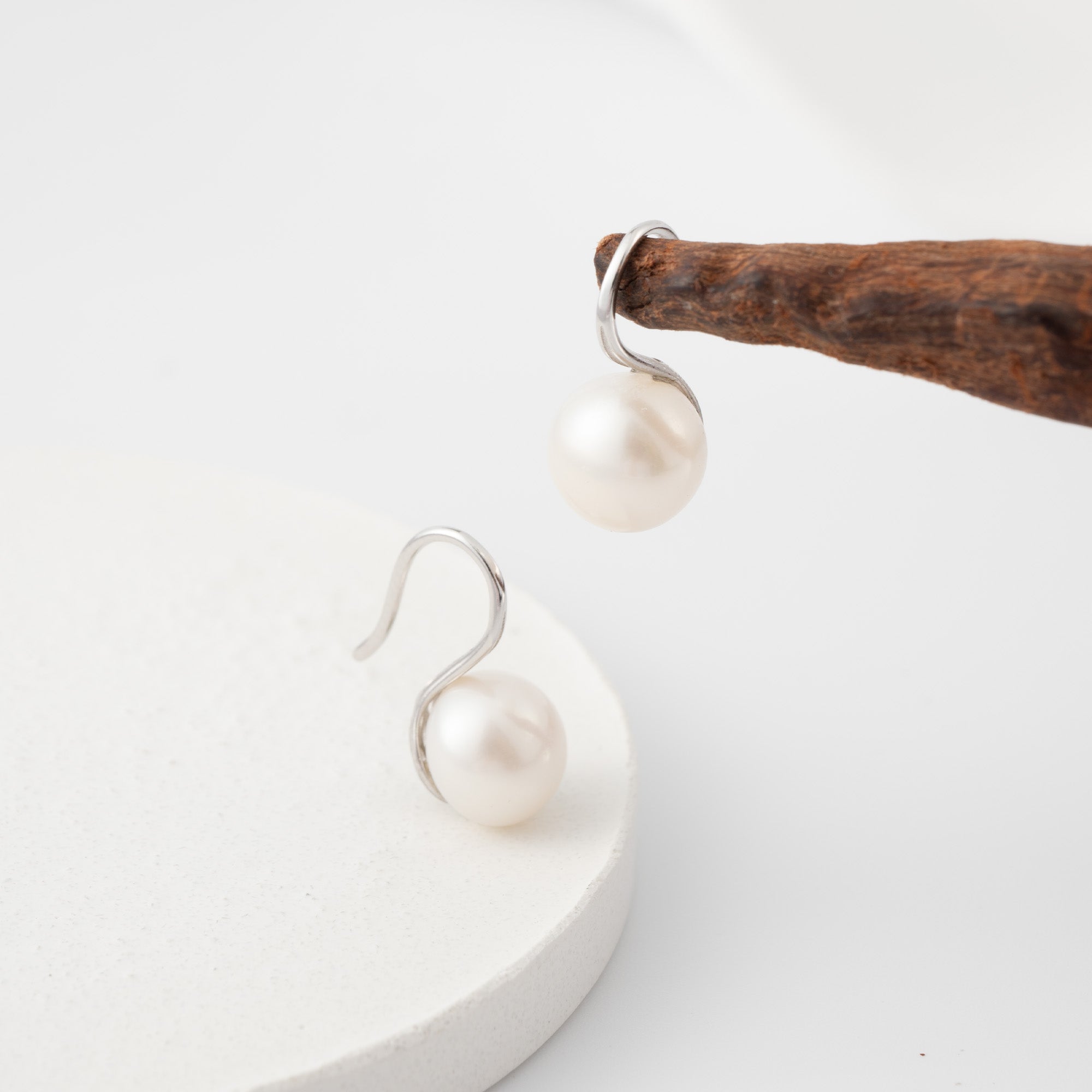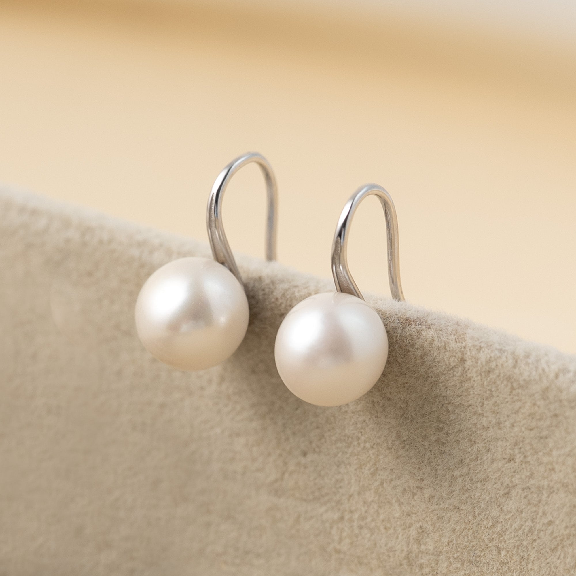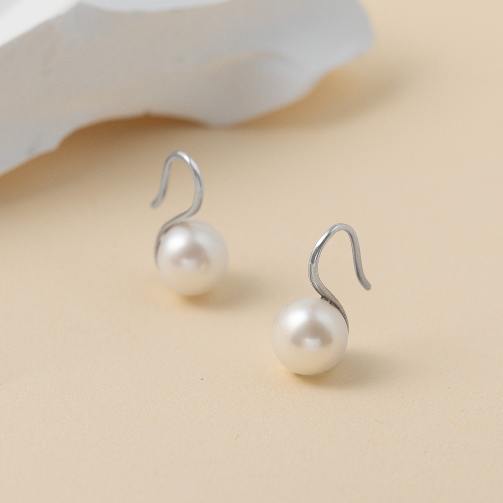 OAHLAN Fine Jewelry Women's Simple Design S925 Sterling Silver Freshwater Pearl Stud Earrings for Wedding Anniversary Gifts