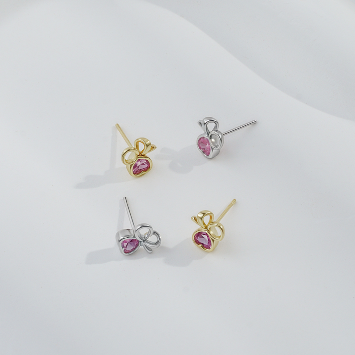 OAHLAN Gold Plated Bowknot Shaped Zircon S925 Sterling Silver Stud Earrings Fine Jewelry for Women Wedding Anniversary Wholesale