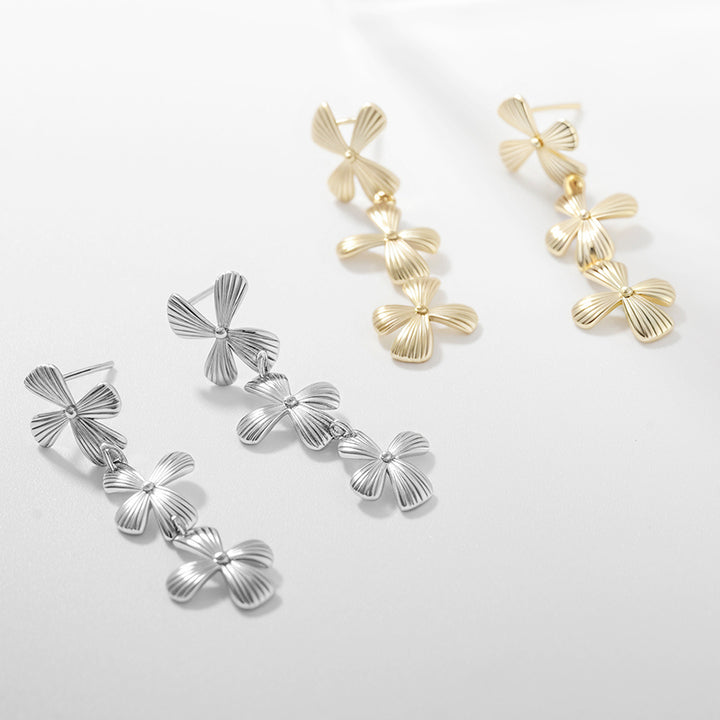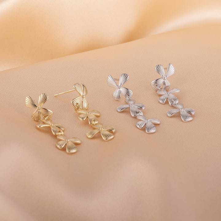 OAHLAN New 14K Gold Plated Swinging Flowers S925 Sterling Silver Drop Earrings Fine Jewelry for Women Wedding Engagement Party