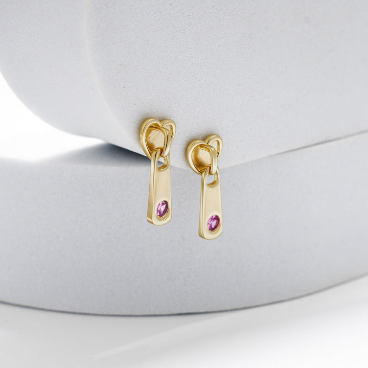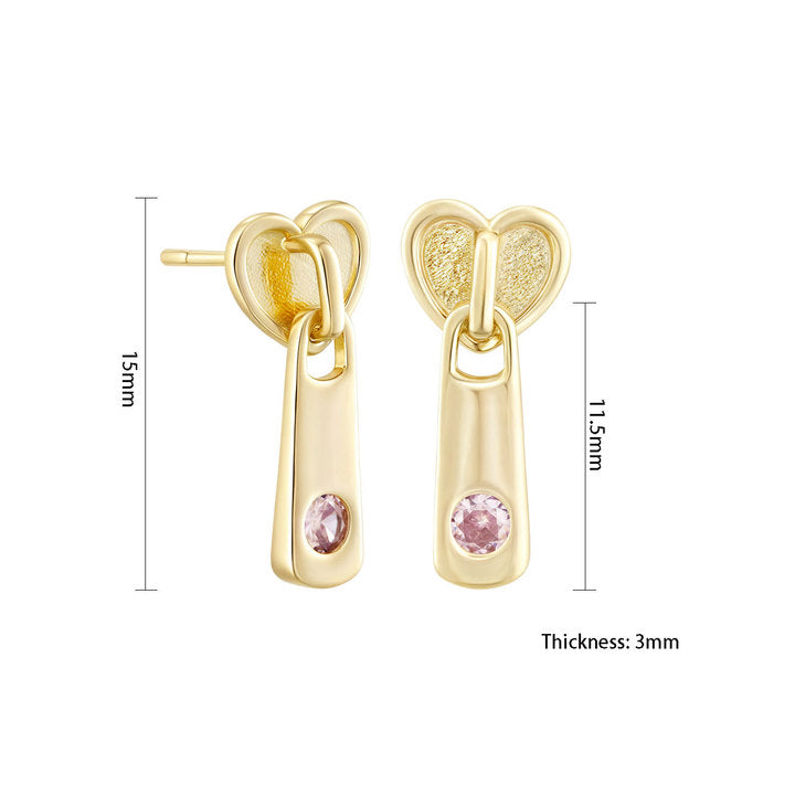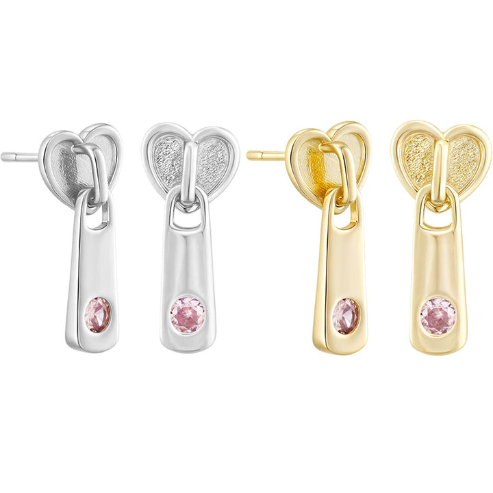 OAHLAN S925 Sterling Silver Women's Zipper Shaped Heart Earrings Gold Plated Fine Jewelry for Wedding Engagement Wholesale