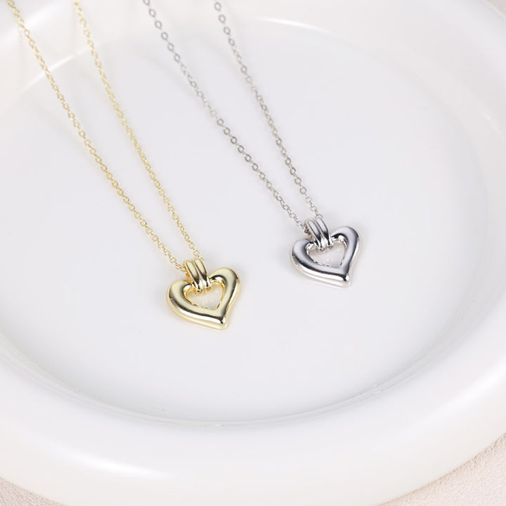OAHLAN Silver 925 Heart Hollowed Pendant Free Necklace 14K Gold Romantic Stylish Link Charm Jewelry Love Women Necklaces