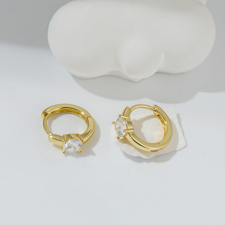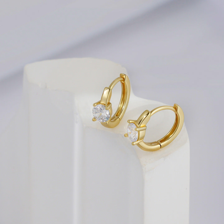 OAHLAN Women's Fine Jewelry Round Cut Zircon S925 Sterling Silver Hoop Earrings Geometric Gold Plated for Wedding Gifts