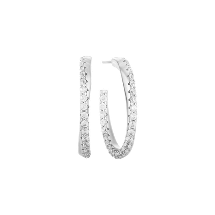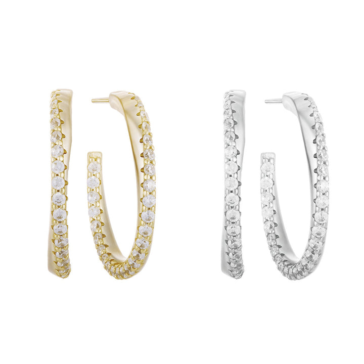 OAHLAN Women's Fine Jewelry S925 Sterling Silver Paved Zircon Hoops Shining C Shaped Stud Earrings Geometric for Wedding Gifts