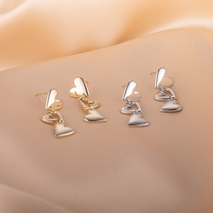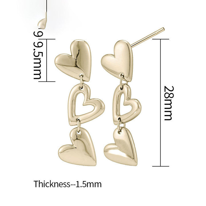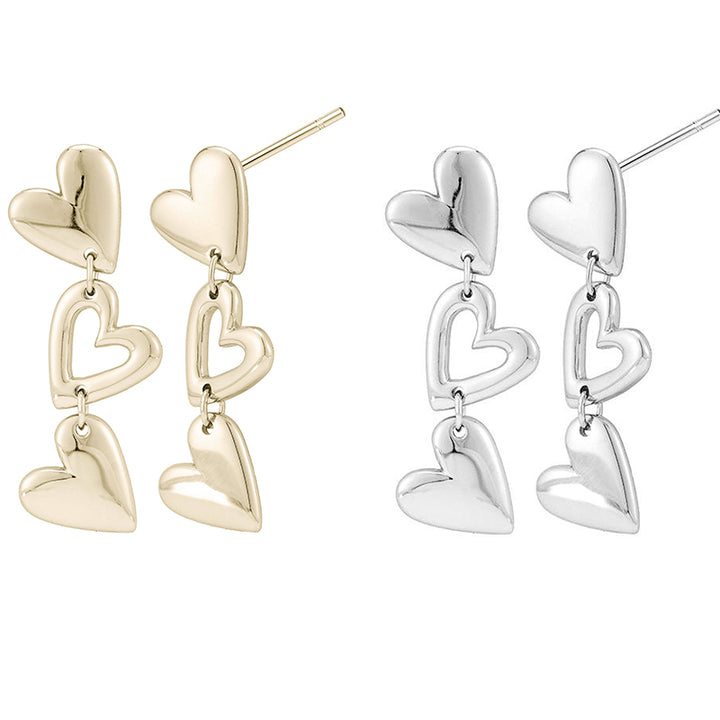 OAHLAN Women's Hollowed-out Heart S925 Sterling Silver Drop Earrings Fine Jewelry with Gold Plated for Wedding Engagement Party