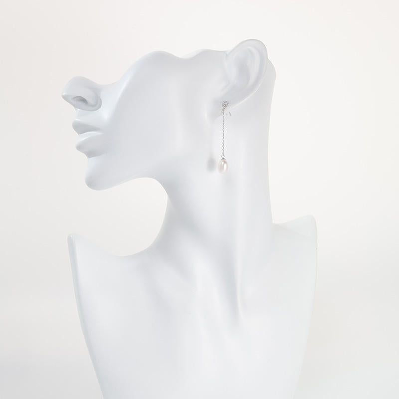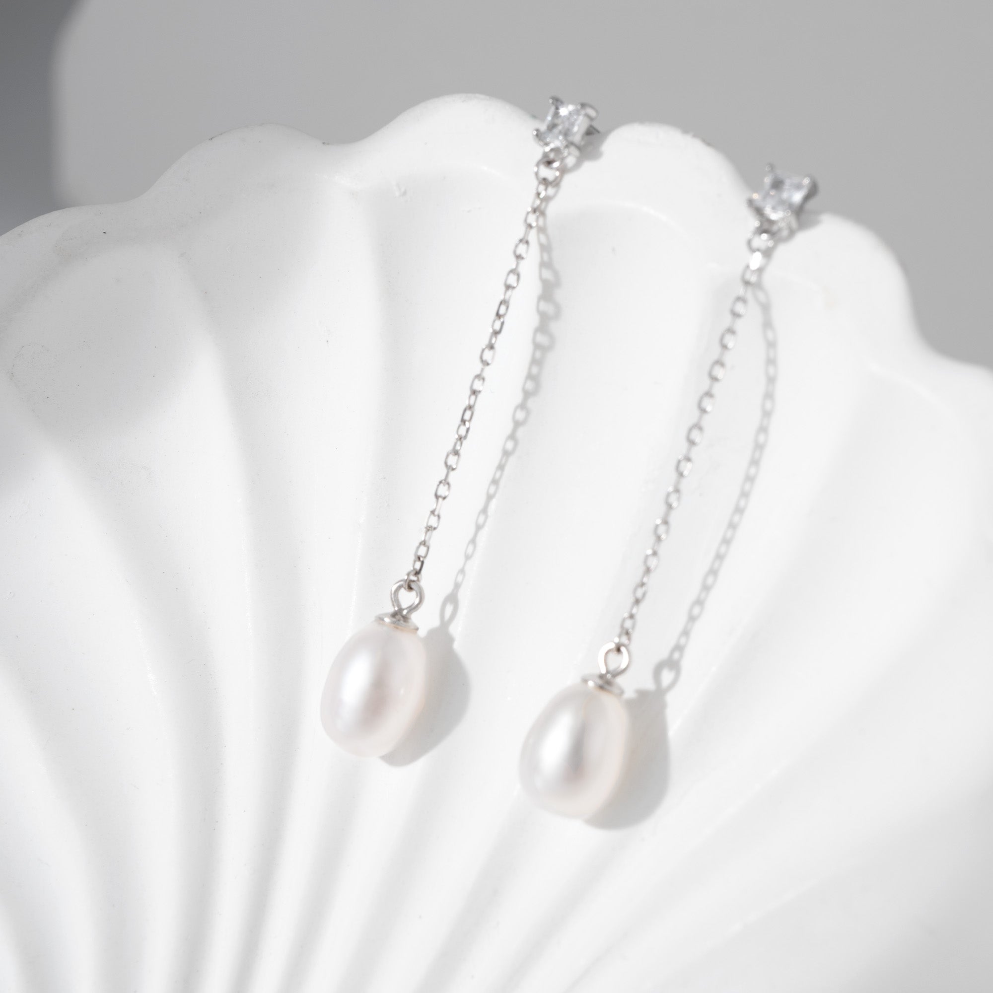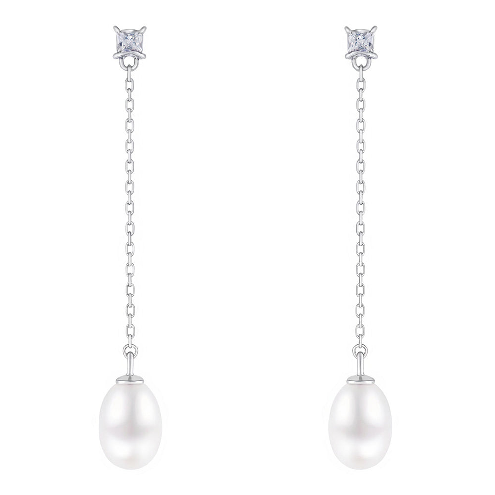 OAHLAN Women's Rhodium Plated Elegant S925 Sterling Silver Freshwater Pearl Drop Earrings with Zircon Fine Jewelry for Wedding