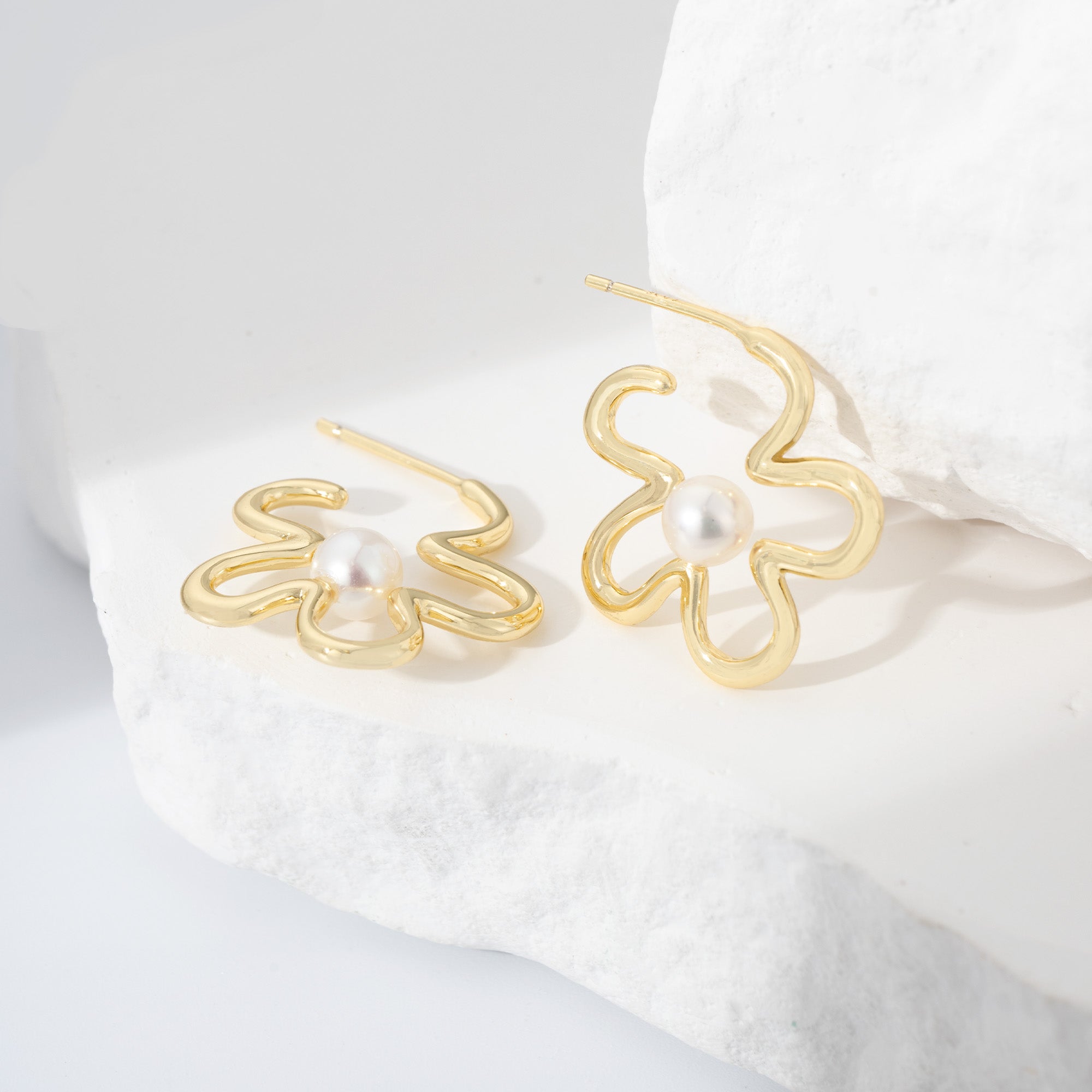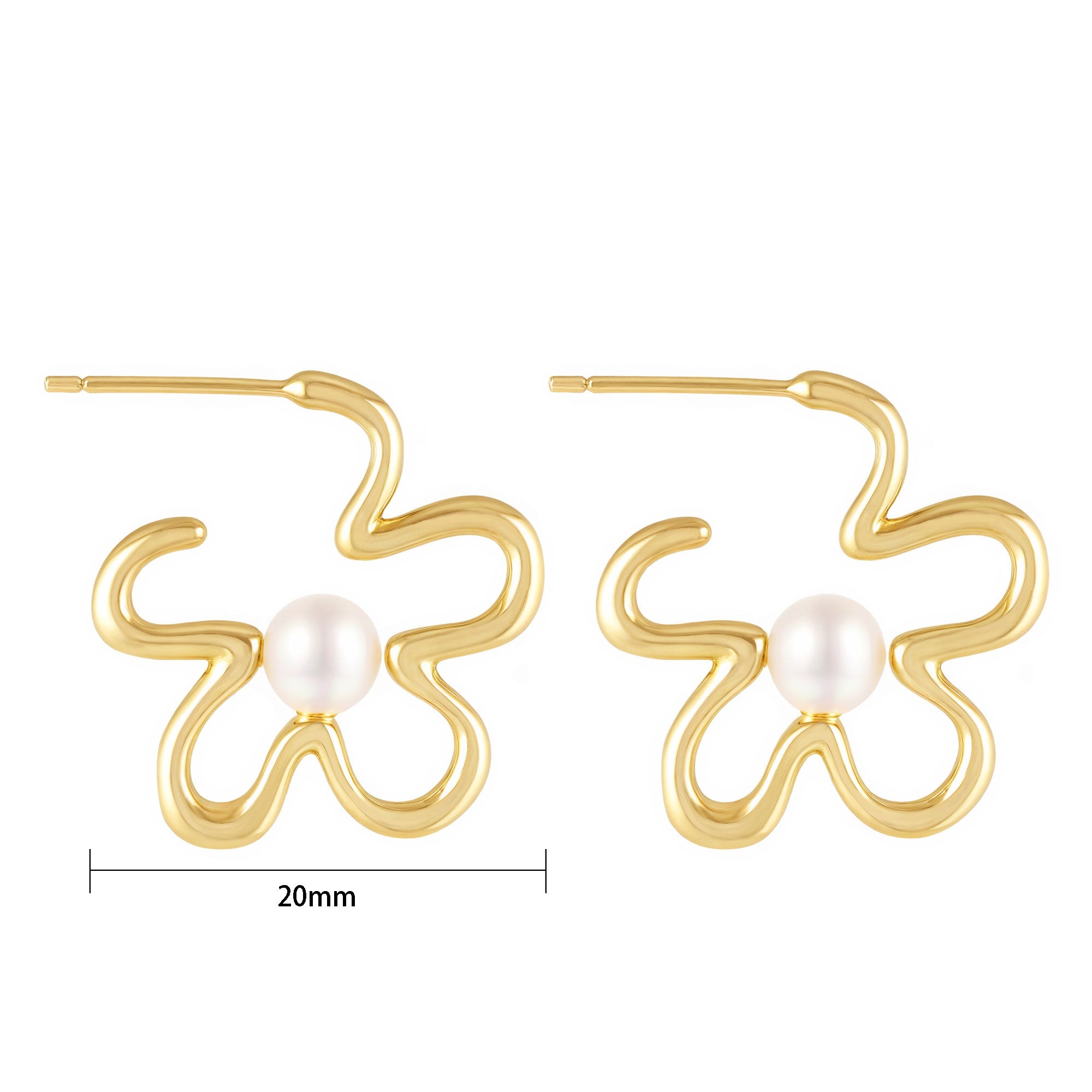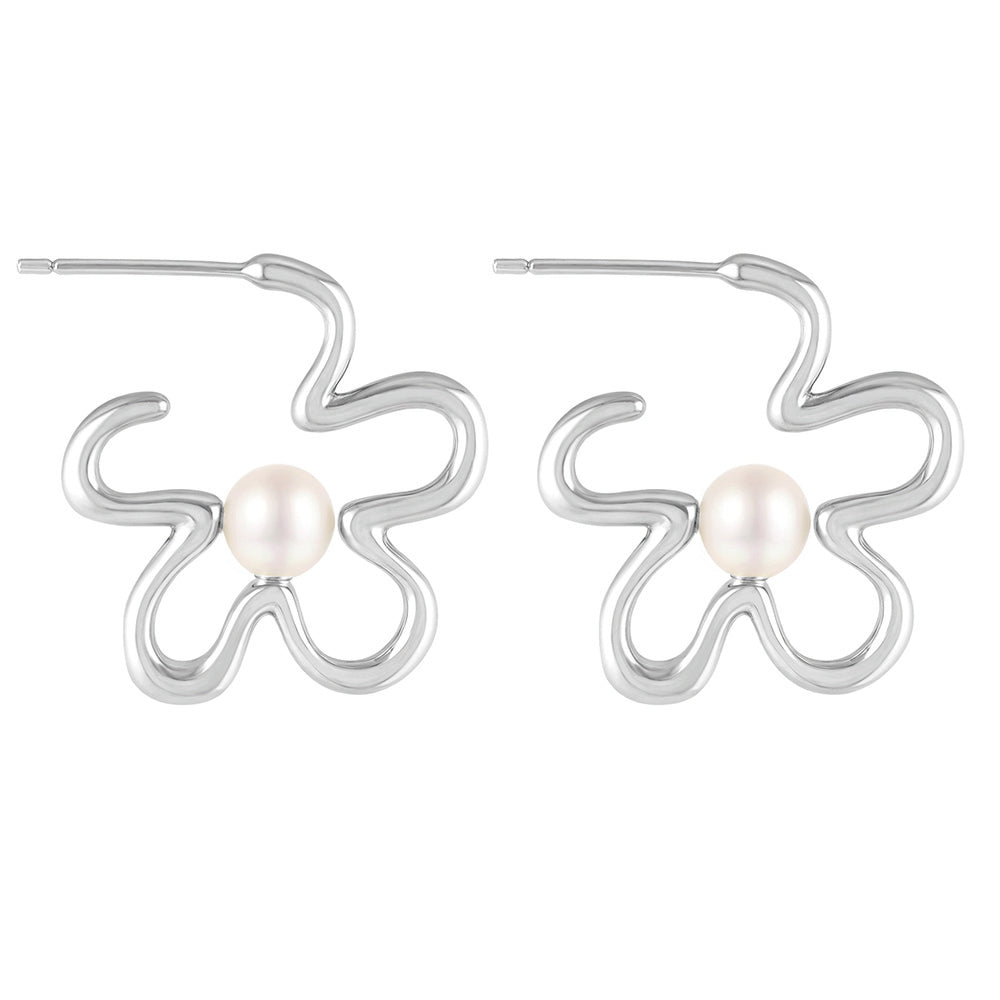 OAHLAN Women's Rhodium Plated S925 Sterling Silver White Freshwater Pearl Earrings Fine Jewelry for Wedding Engagement