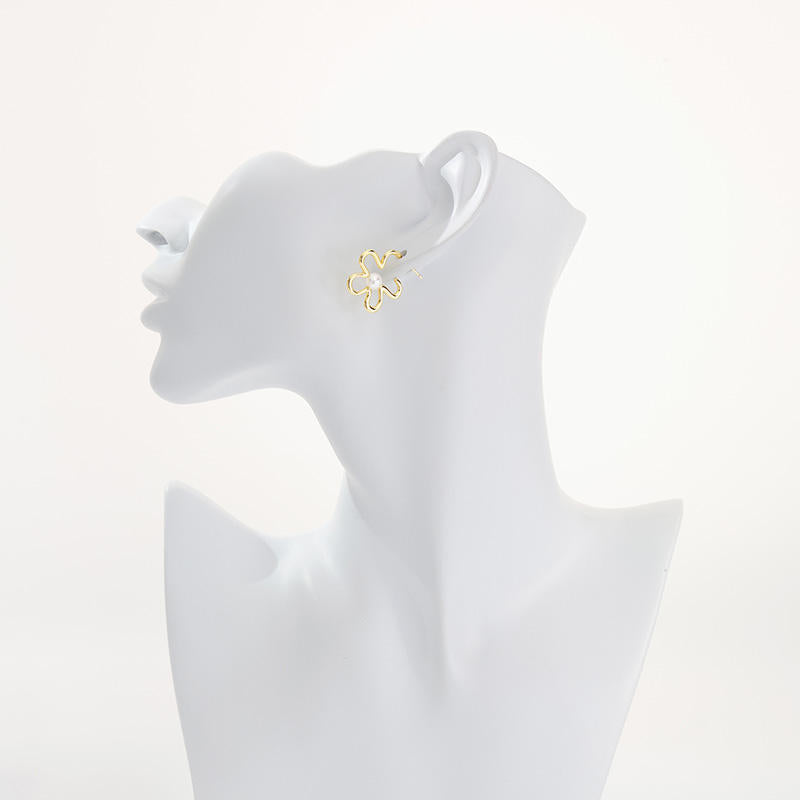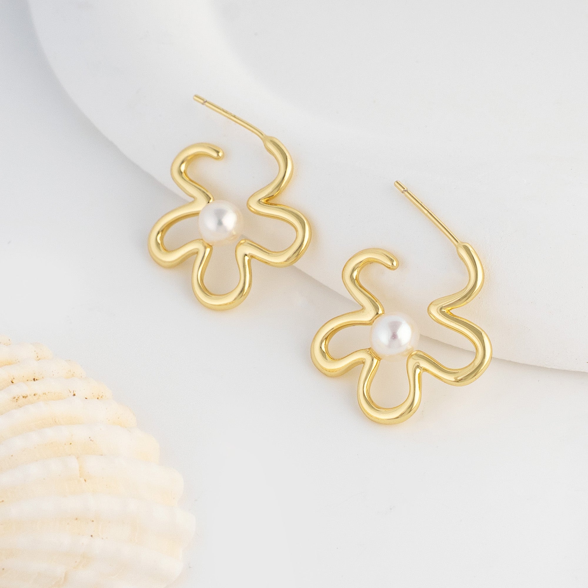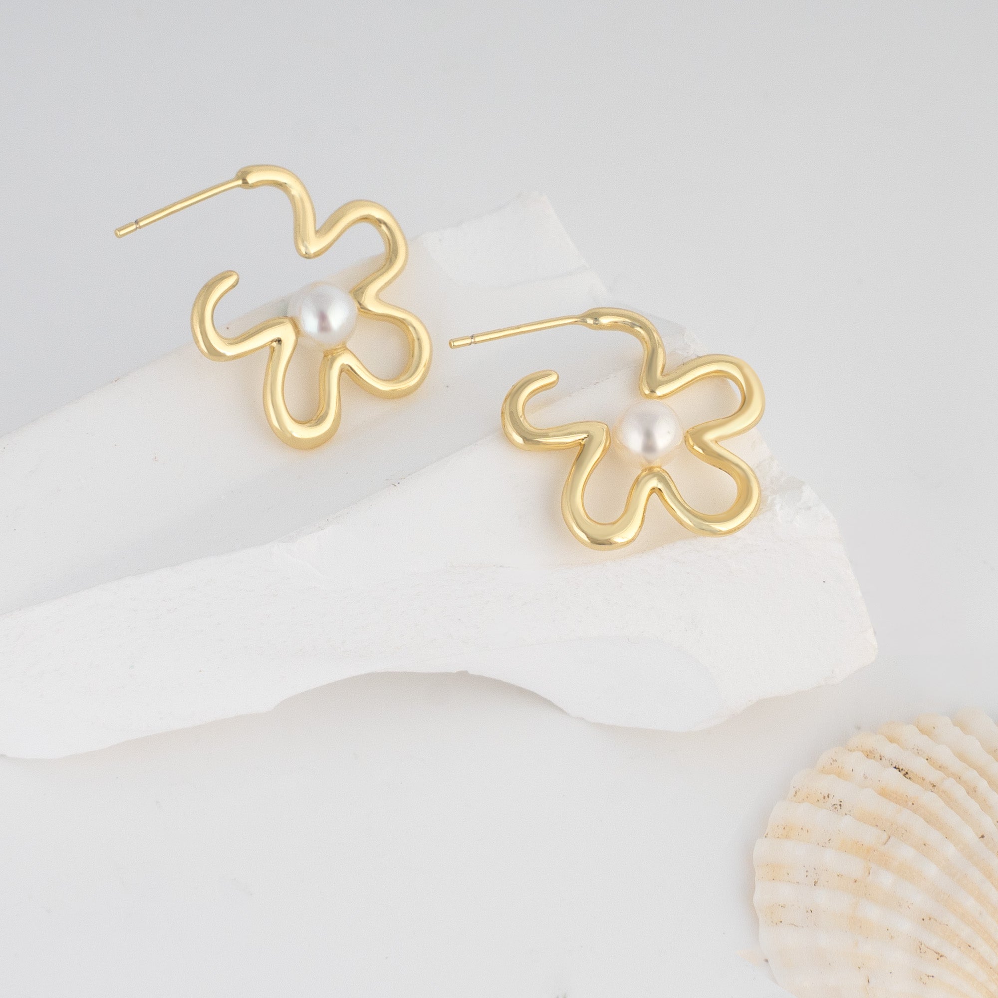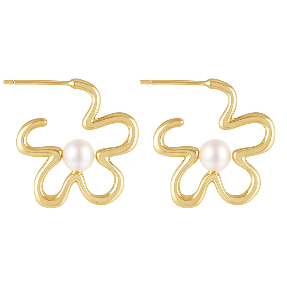 OAHLAN Women's Rhodium Plated S925 Sterling Silver White Freshwater Pearl Earrings Fine Jewelry for Wedding Engagement