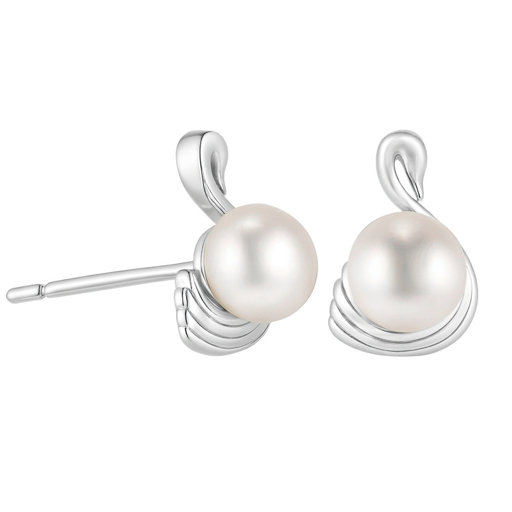 OAHLAN Women's S925 Sterling Silver Freshwater Pearl Earrings Rhodium Plated Swan Design Engagement Wedding Party Fine Jewelry