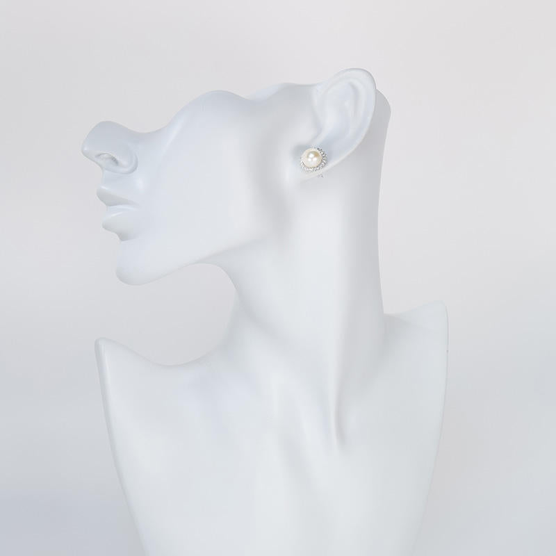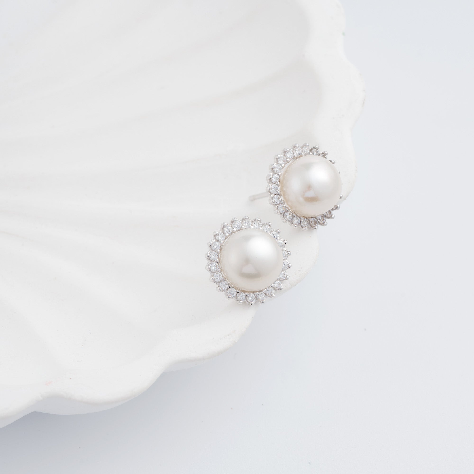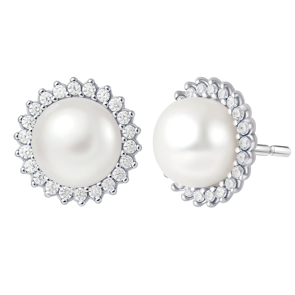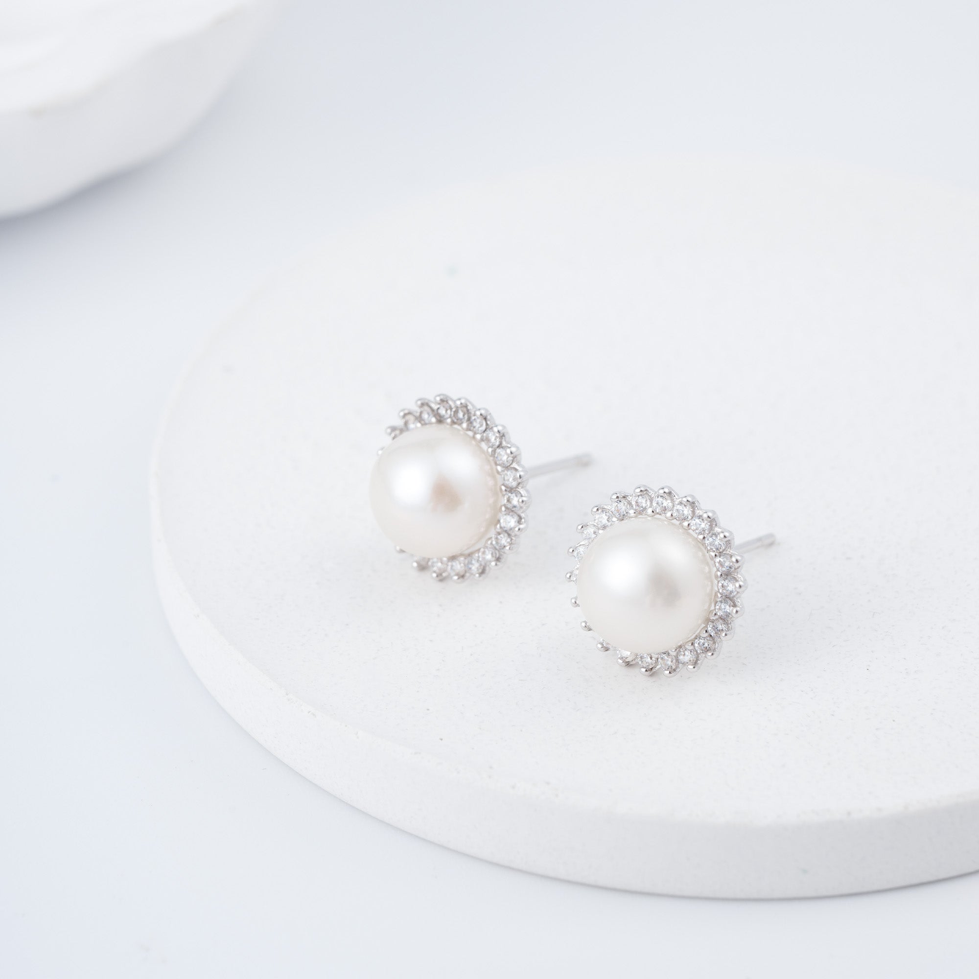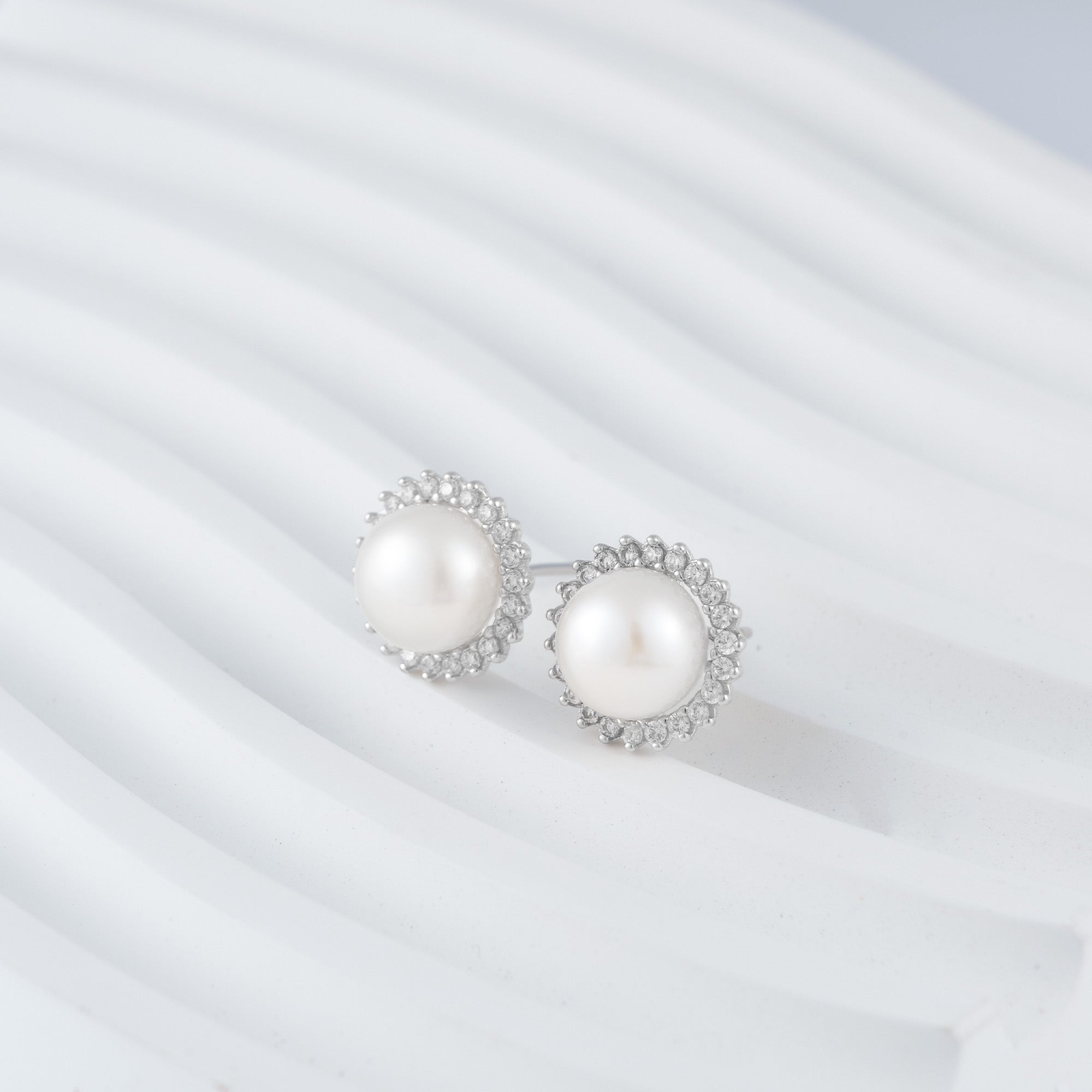 OAHLAN Women's S925 Sterling Silver Freshwater Pearl Stud Earrings with Floral Design Fine Jewelry Wedding Anniversary