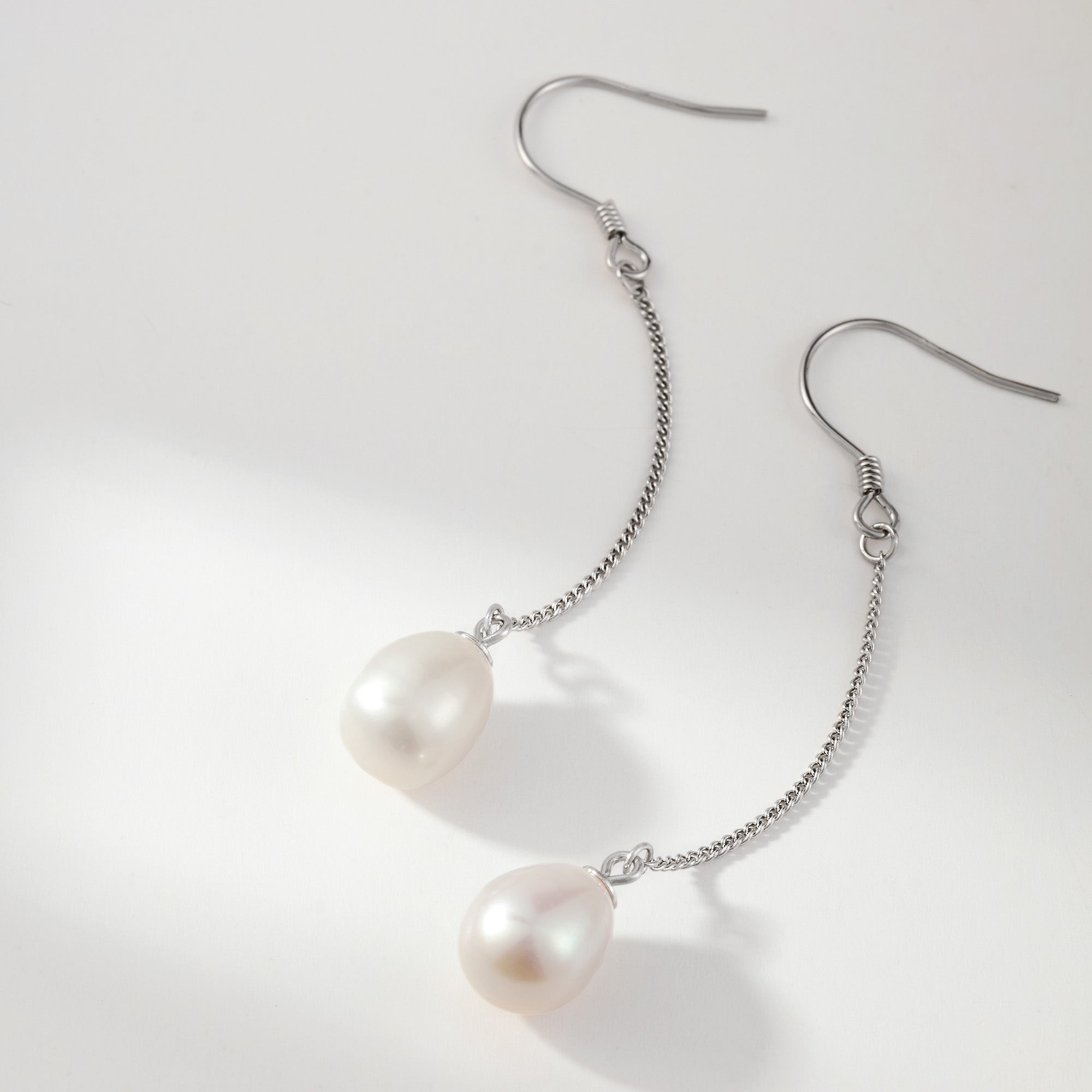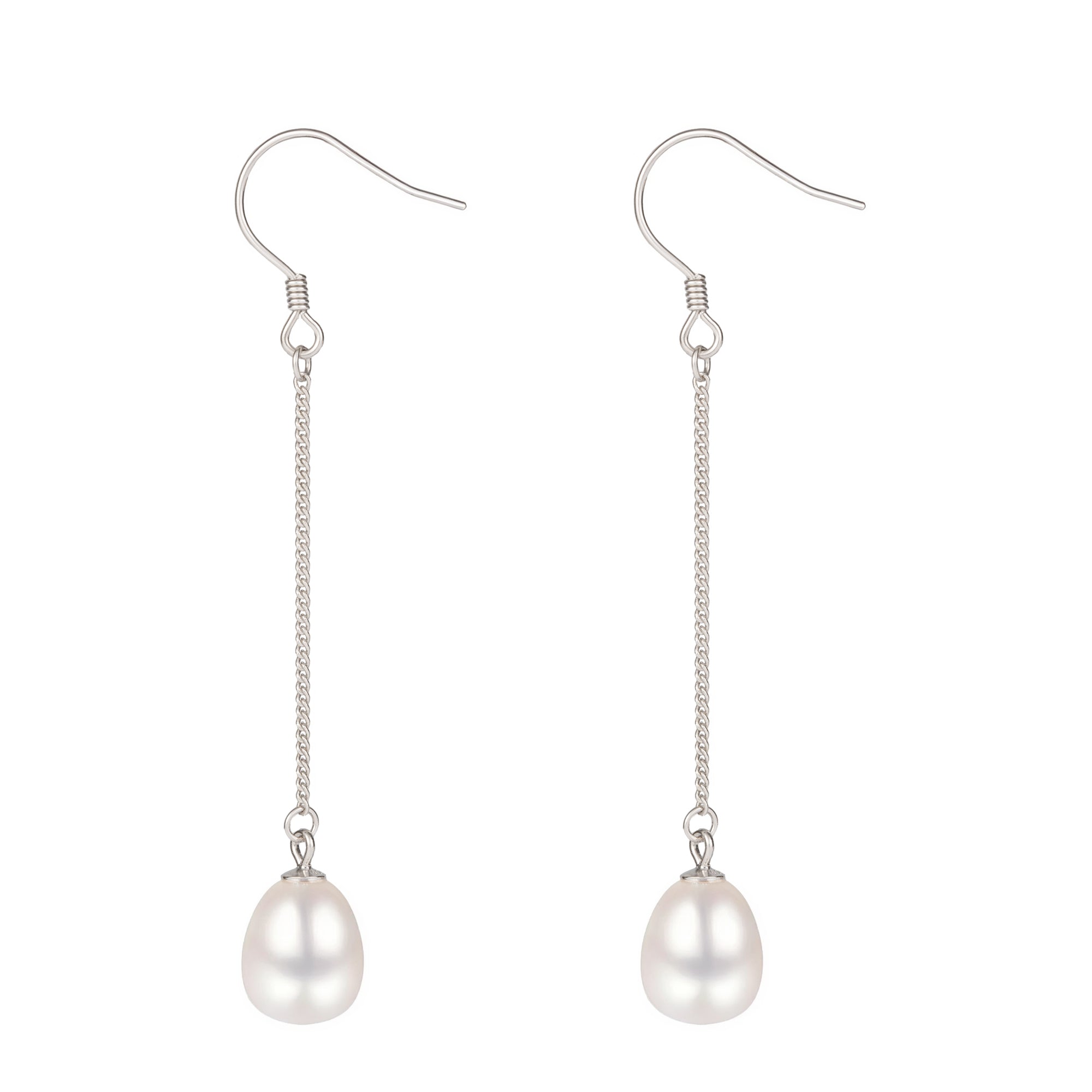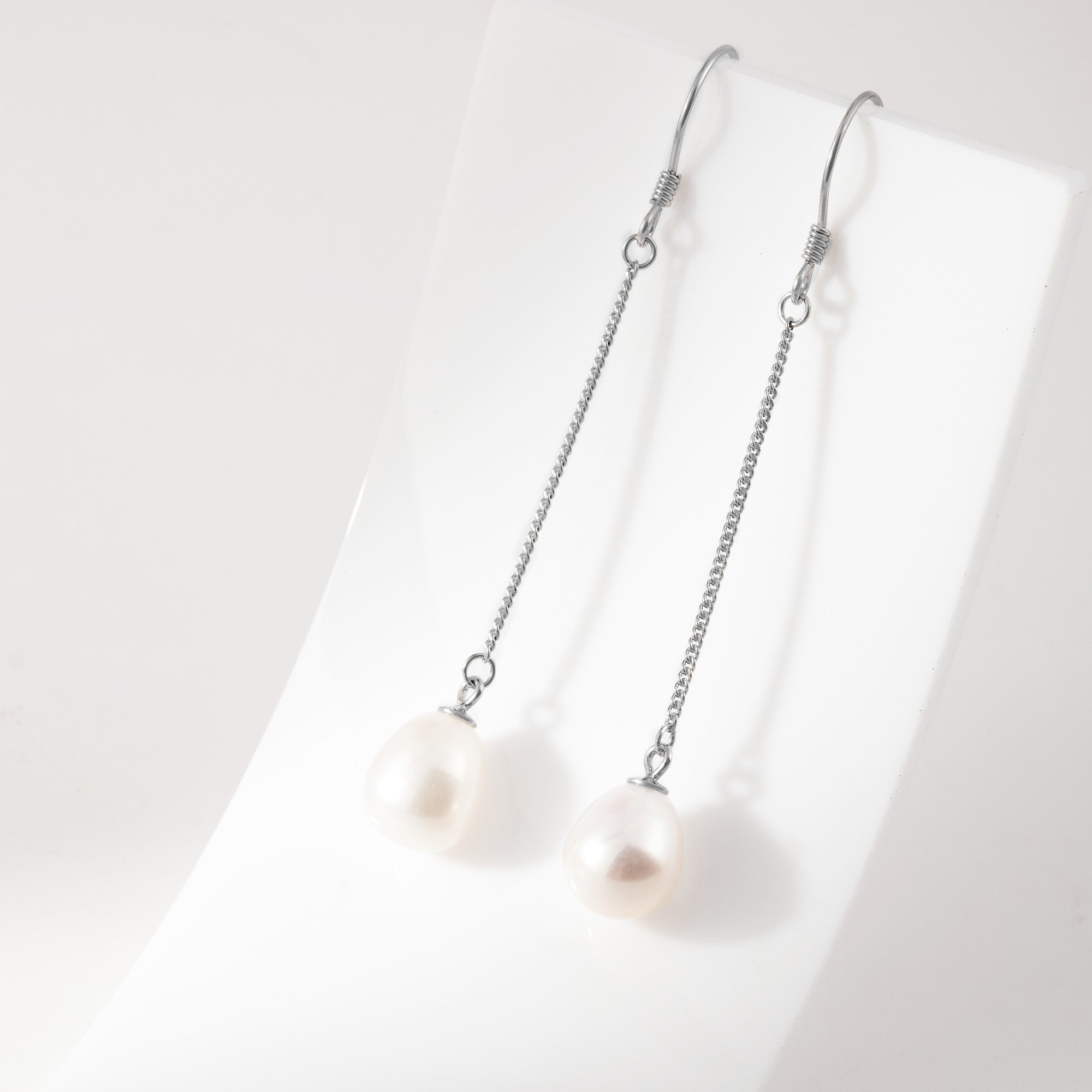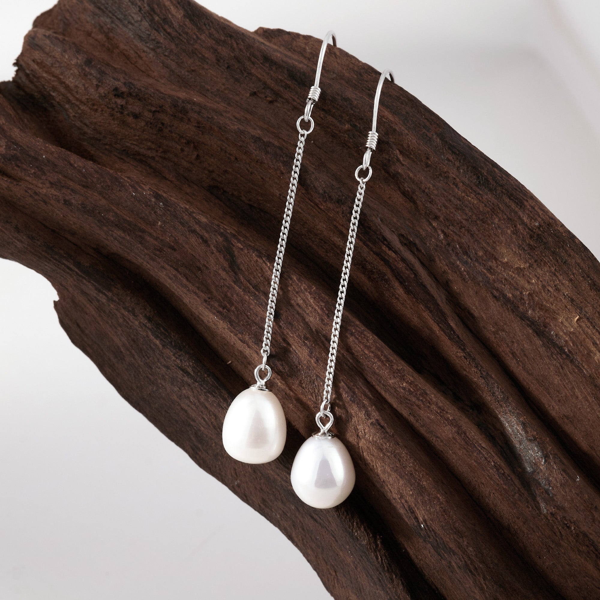 OAHLAN Women's S925 Sterling Silver White Freshwater Pearl Lightweight Drop Long Earrings Fine Jewelry for Wedding Anniversary