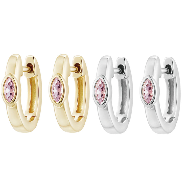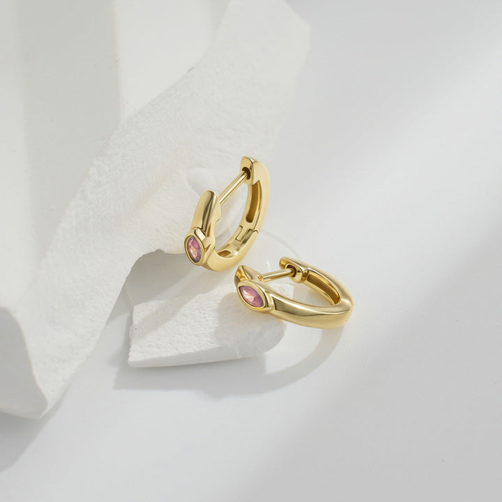 OAHLAN Women's Trendy 14K Gold Plated S925 Sterling Silver Hoop Earrings with Pink Zircon Fine Jewelry for Party Wedding Gifts