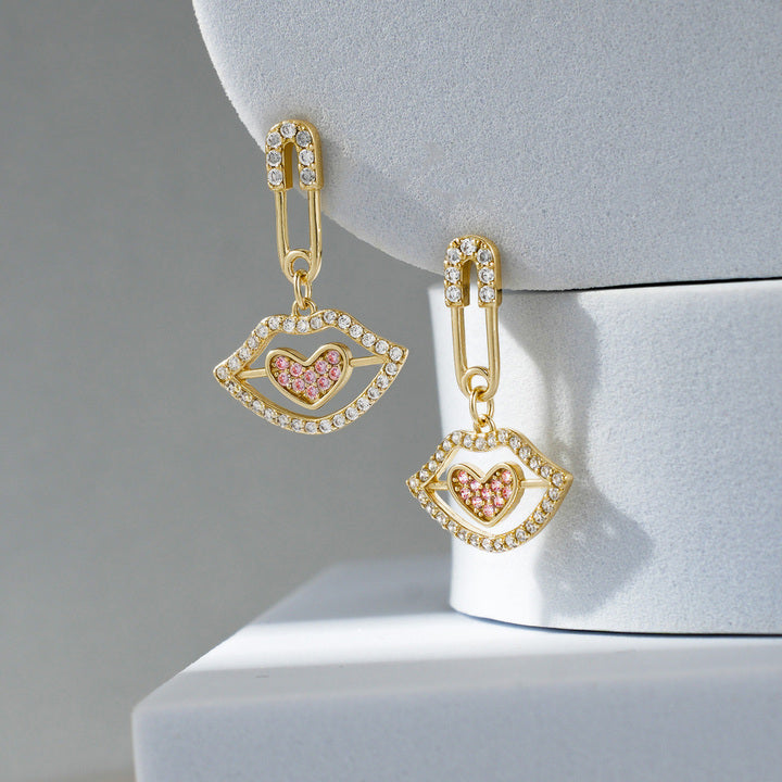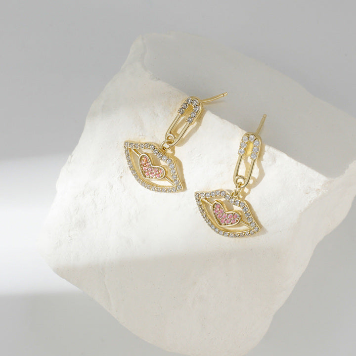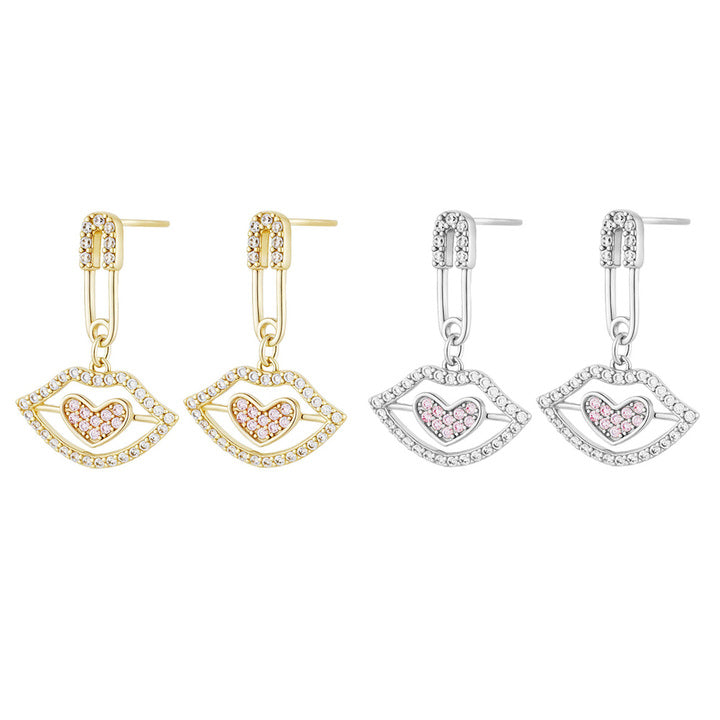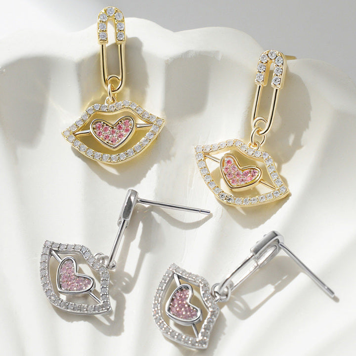 OAHLAN Women's Trendy S925 Sterling Silver Lip Shape Heart Dangle Drop Earrings Zircon Fine Jewelry for Wedding Party Gift