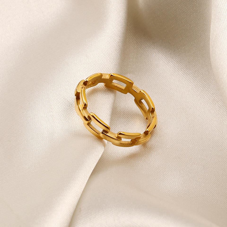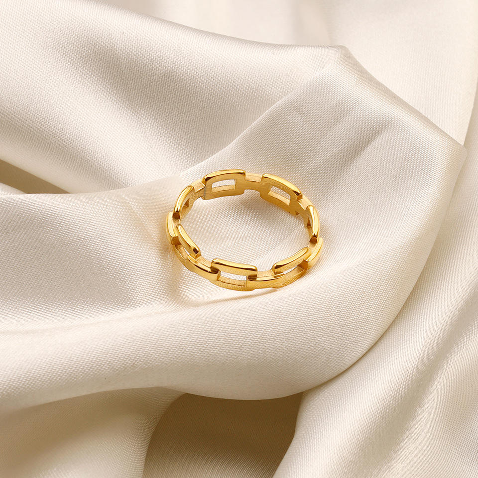 Simple Hollow Stainless Steel Ring 18K Gold Plated Chain Women Ring Jewelry