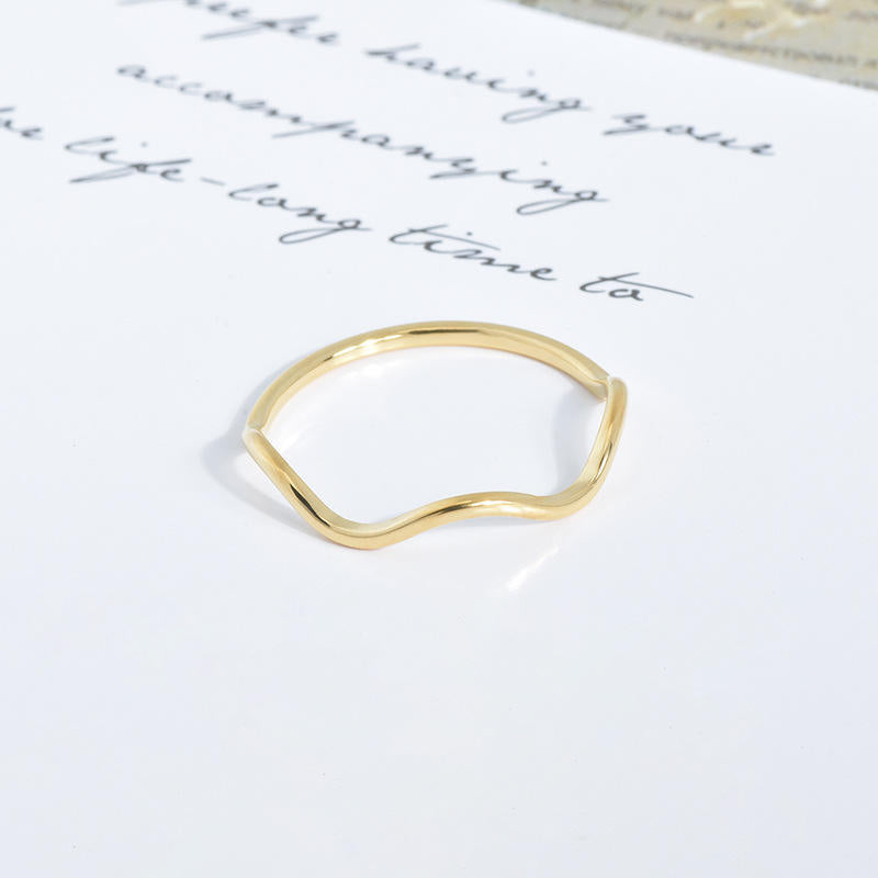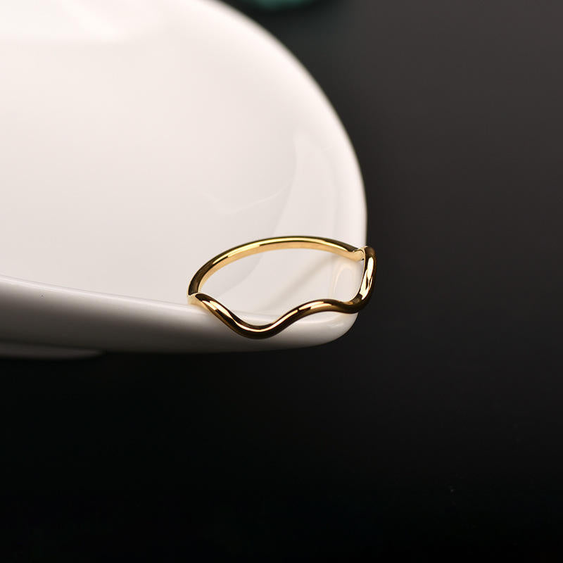Stainless Steel Wave Pattern Ring Jewelry Plating 18K Gold Geometrically Irregular Abstract Shaped Women Rings